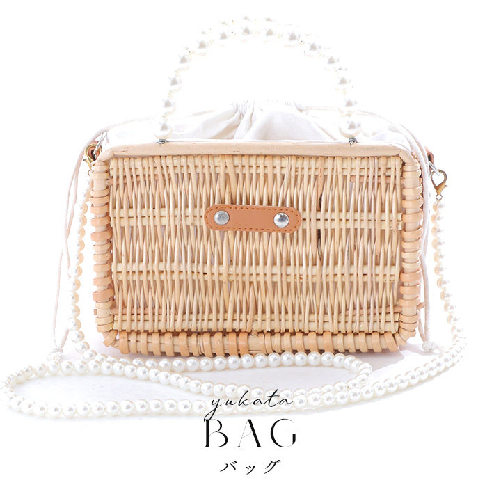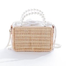 パールハンドル付きランタン編み長方形カゴバッグ[YMT] [YB-2407-kj-BE-s9]