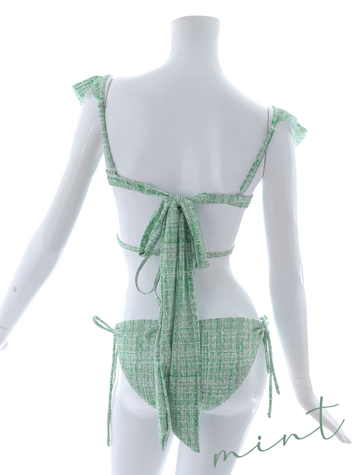 ツイード バッククロスリボン バックリボン ミント ツイード柄水着
