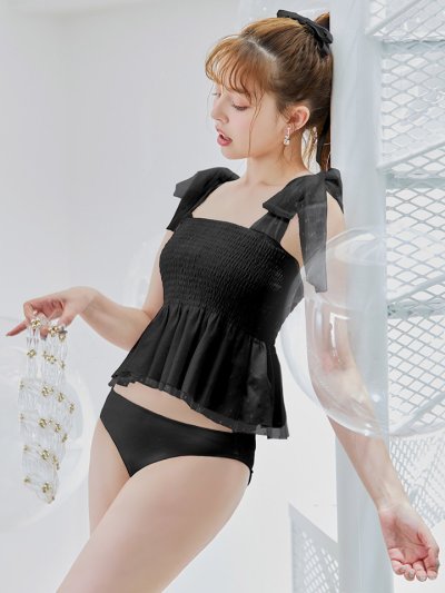 ドット柄のチュールパフスリーブが大人可愛いビキニが登場!
