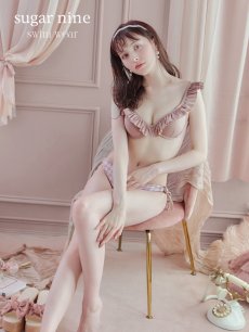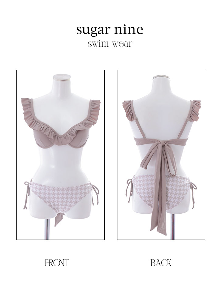 袖フリルにピンクベージュが大人可愛い千鳥柄水着が登場
