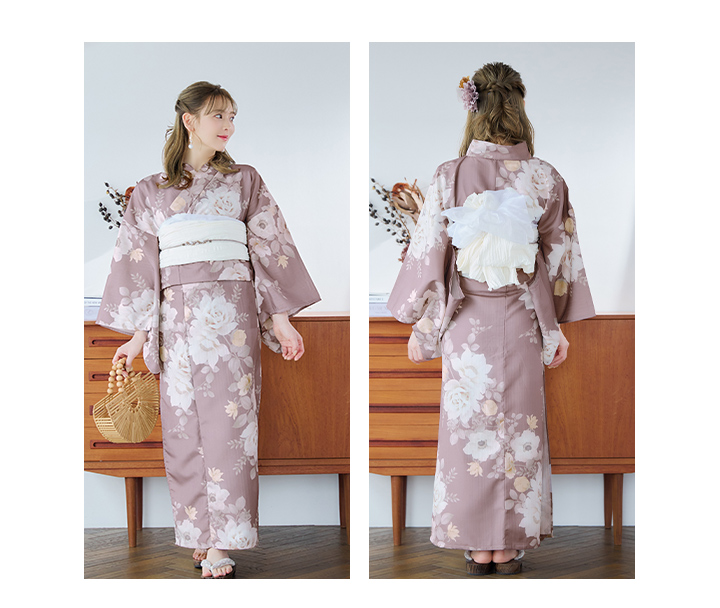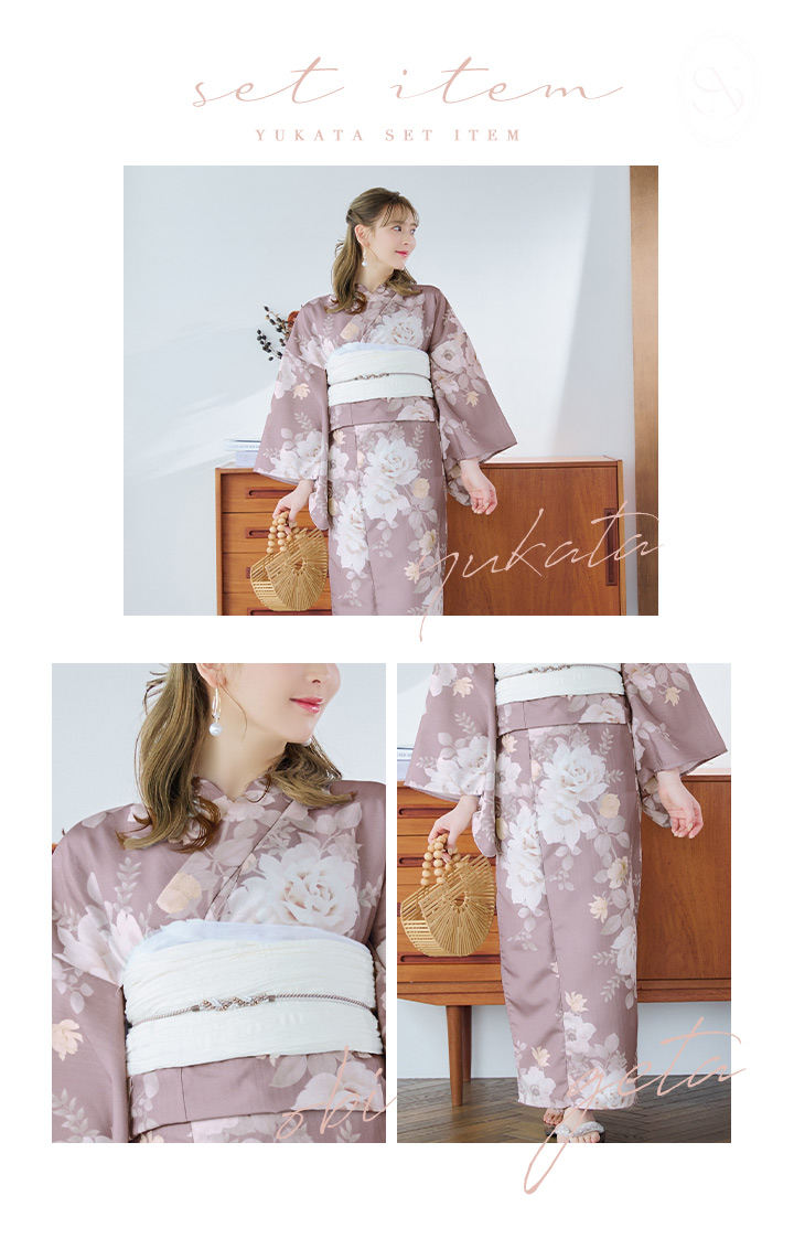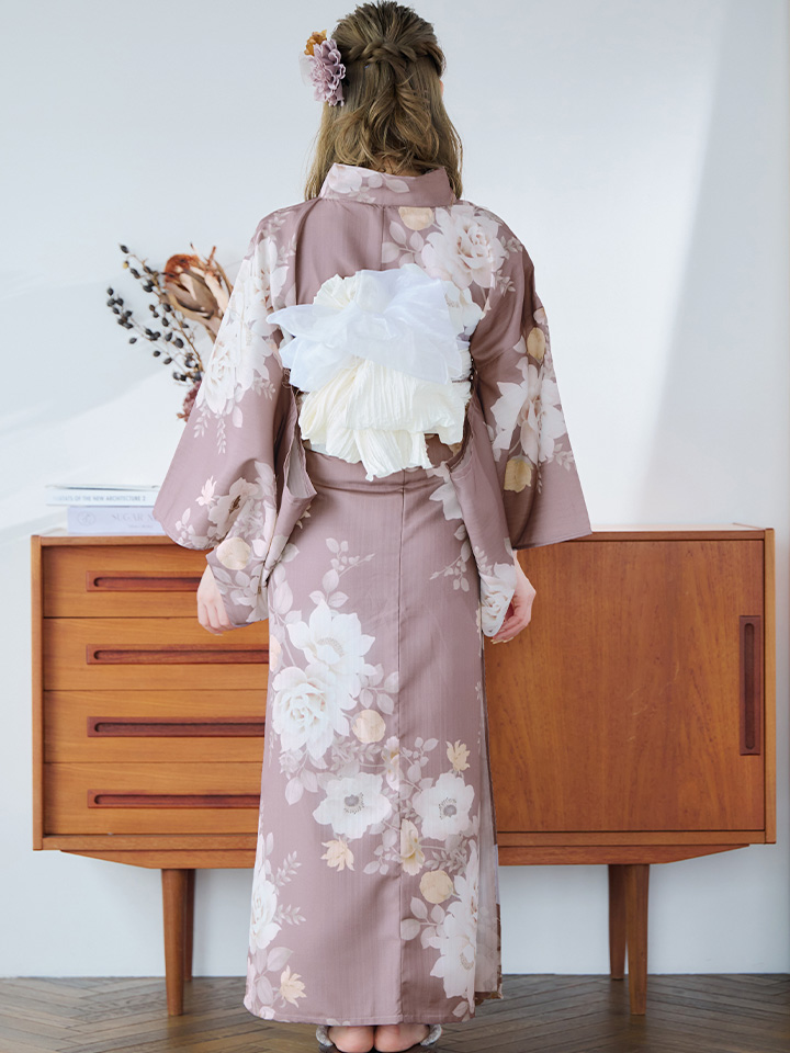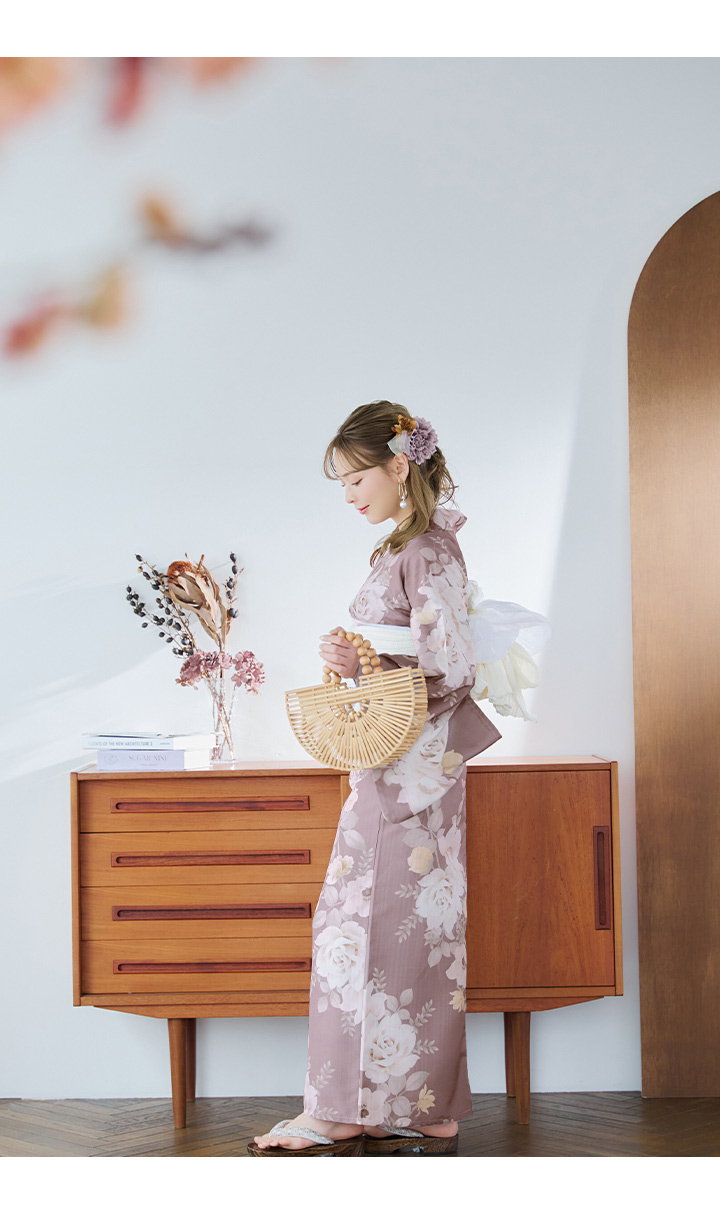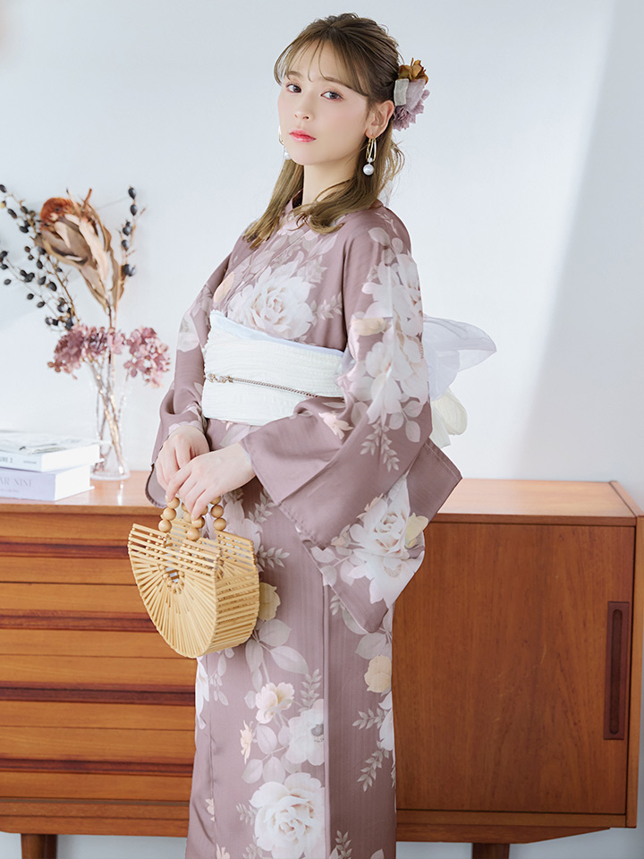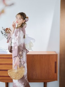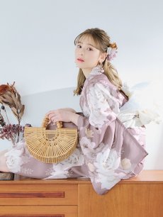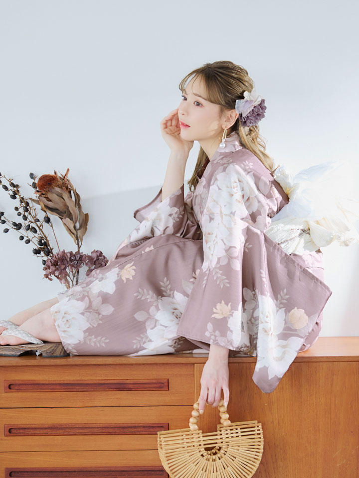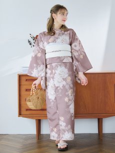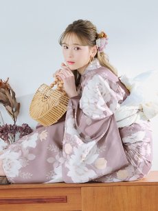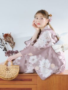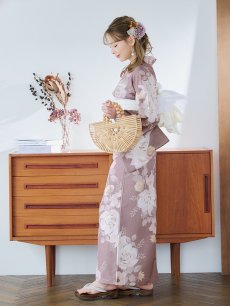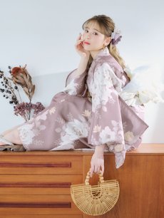 【即日発送】ピンクベージュフラワー浴衣 【浴衣3点セット 浴衣/帯/下駄】 [YMT] [Y-9029-ok-BR-F-24IE]