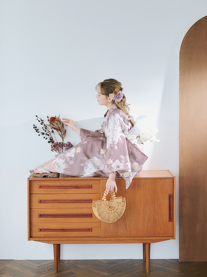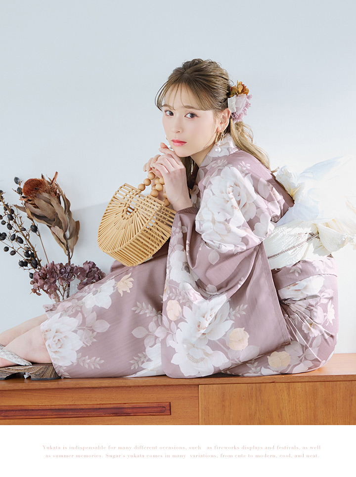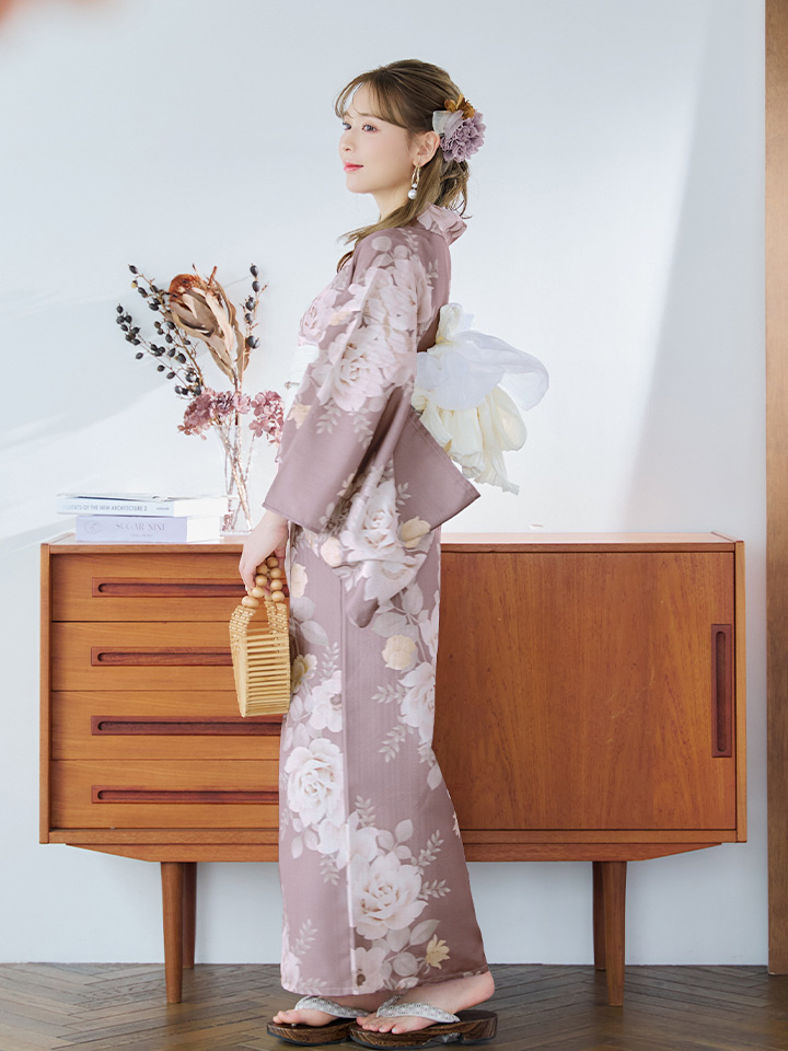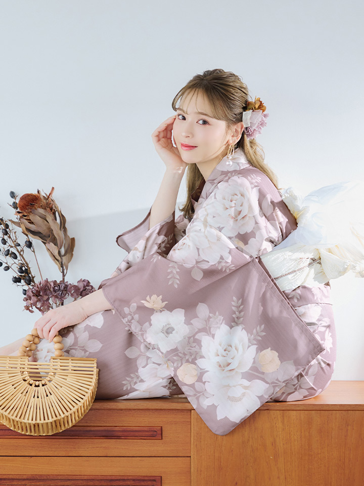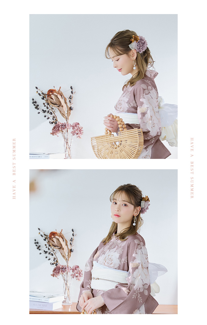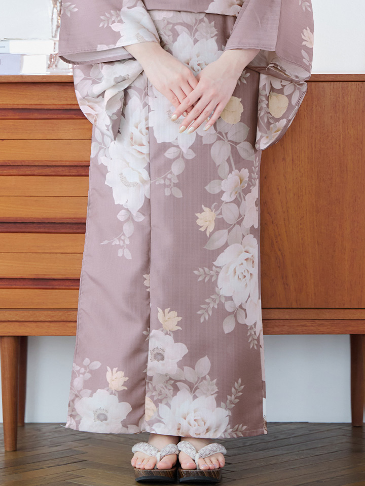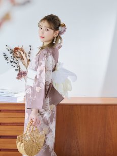 【即日発送】ピンクベージュフラワー浴衣 【浴衣3点セット 浴衣/帯/下駄】 [YMT] [Y-9029-ok-BR-F-24IE]