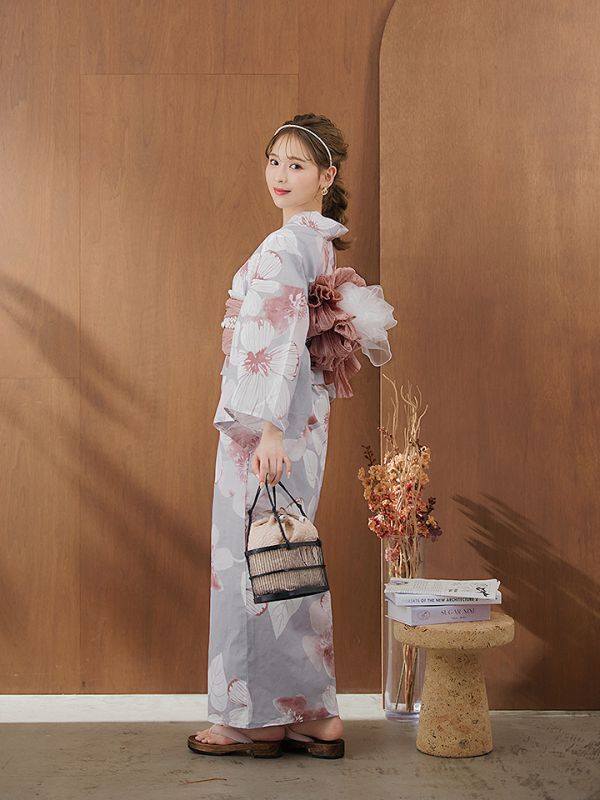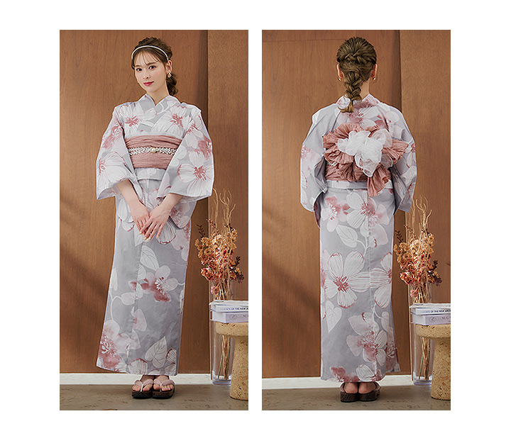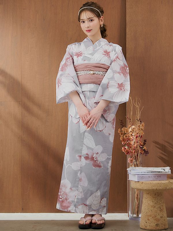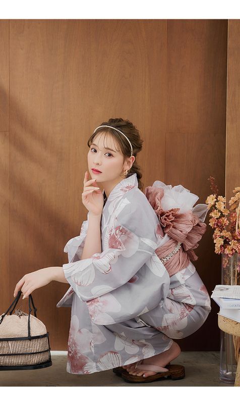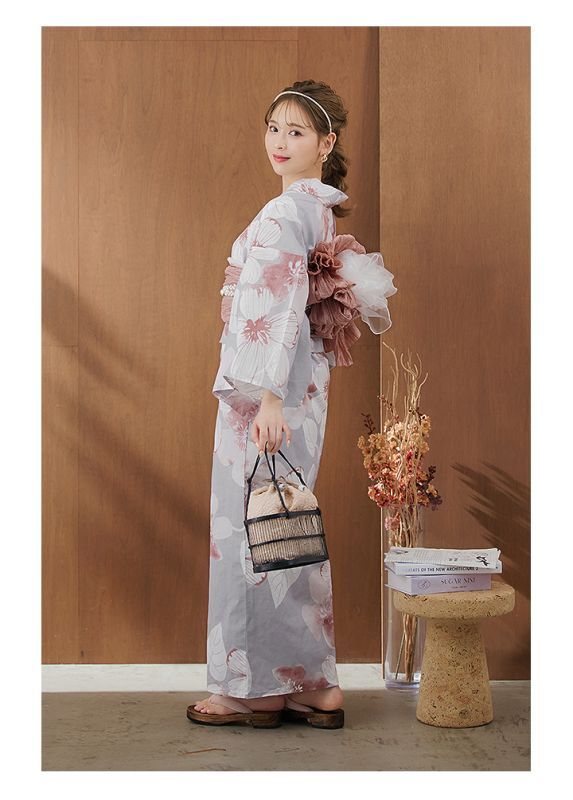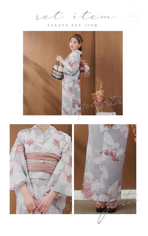 【即日発送】シック大人フラワー浴衣 【浴衣3点セット 浴衣/帯/下駄】 [YMT] [Y-8020-kj-dzh-GY-F-24IE]