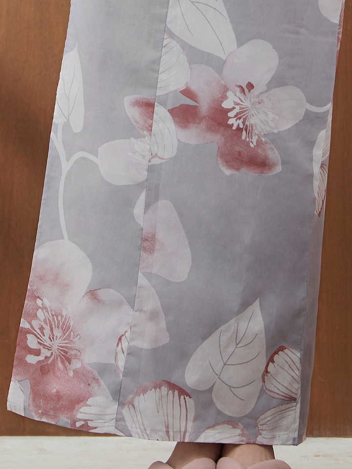 大胆なフラワー柄薄いグレー地に映えるレッドブラウンのカラーと大胆なフラワー柄がレトロで上品さを漂わせる♥