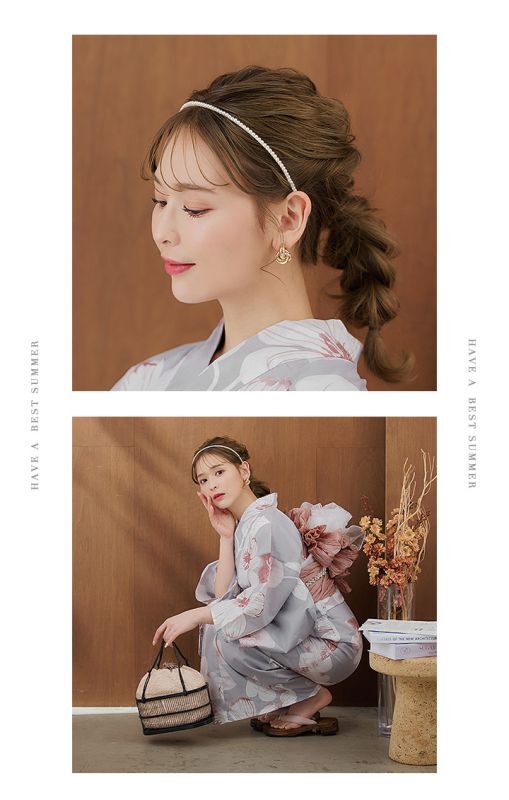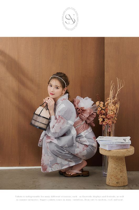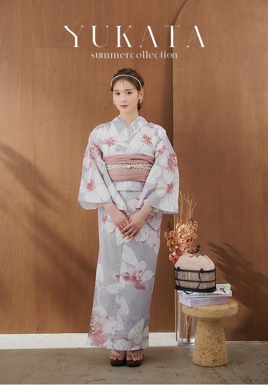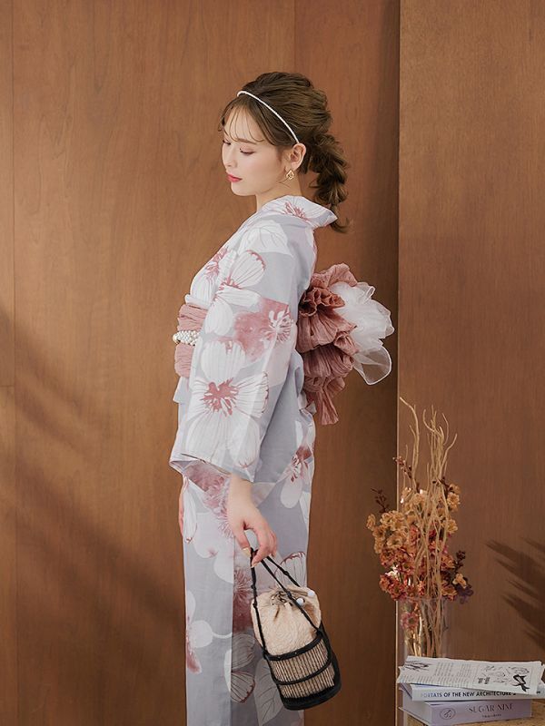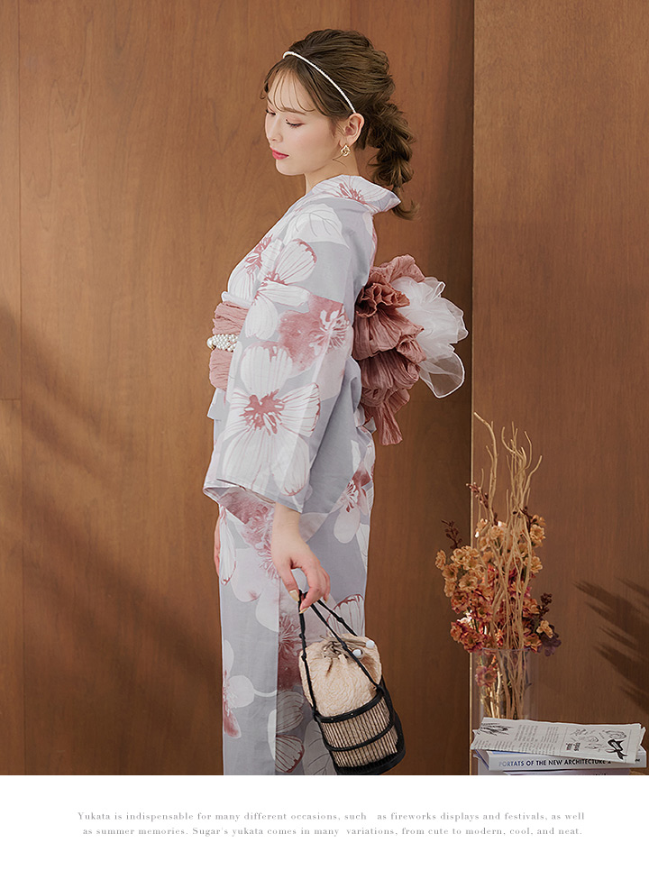 シックなカラーと大人レトロなフラワーデザインに今っぽさを感じる夏浴衣。