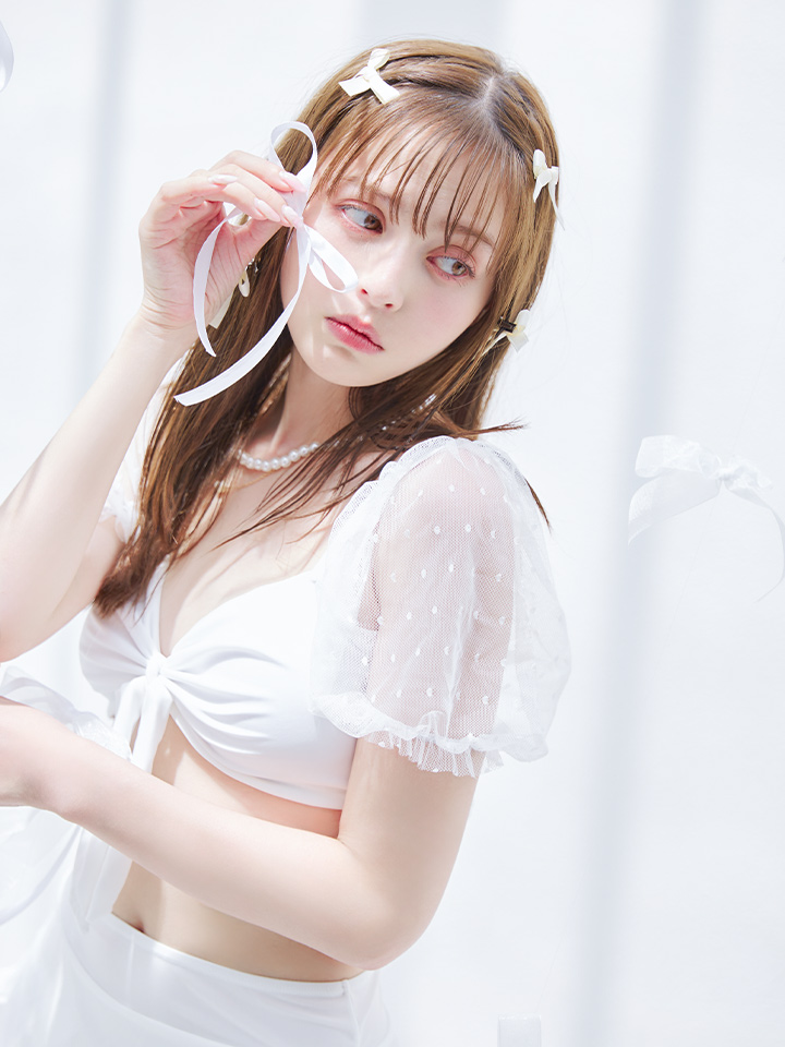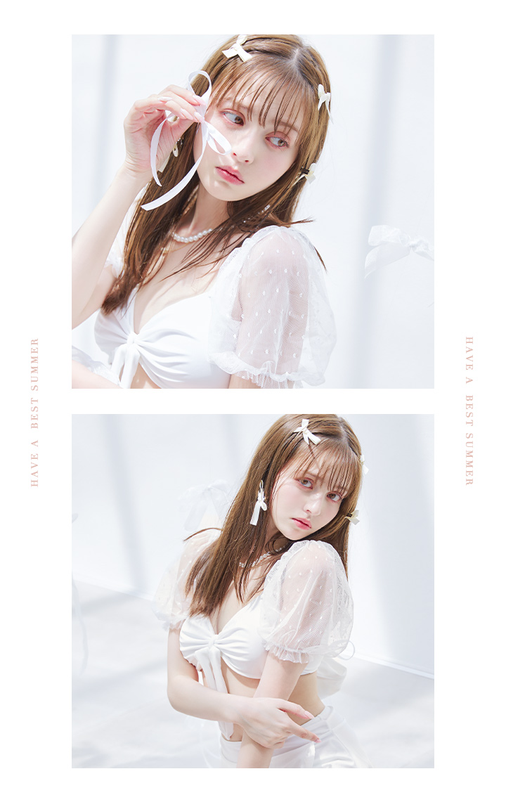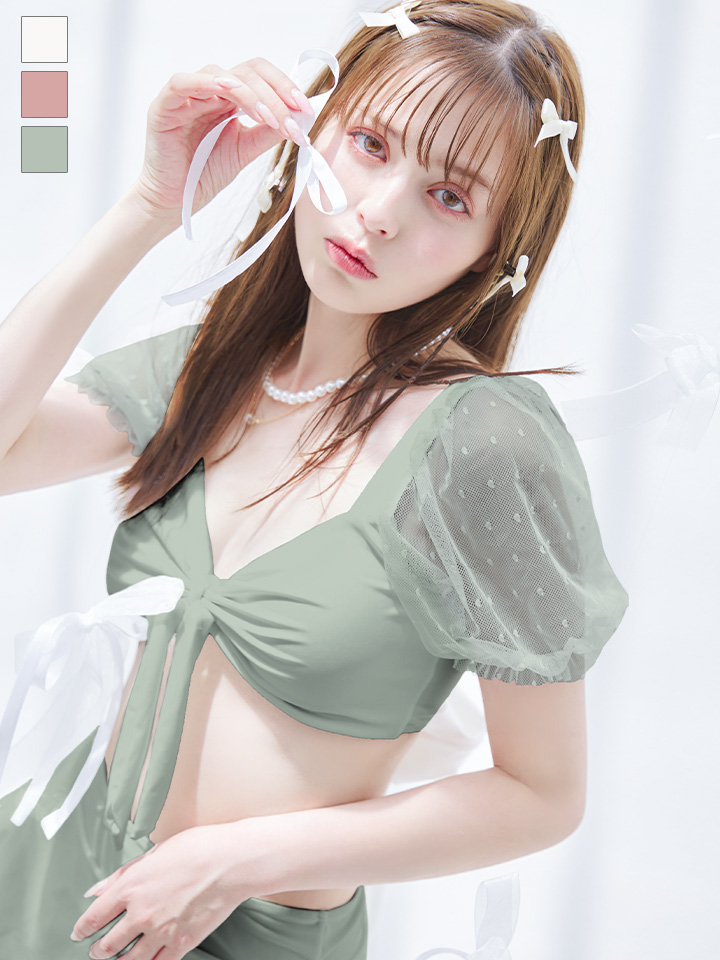 ドット柄のチュールパフスリーブが大人可愛いビキニが登場!