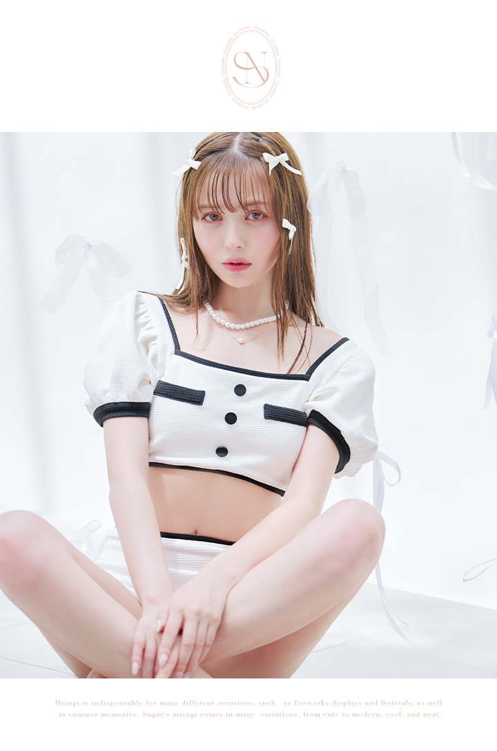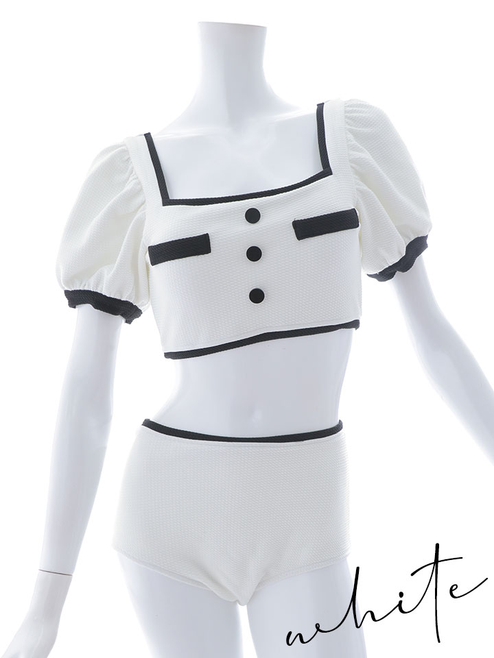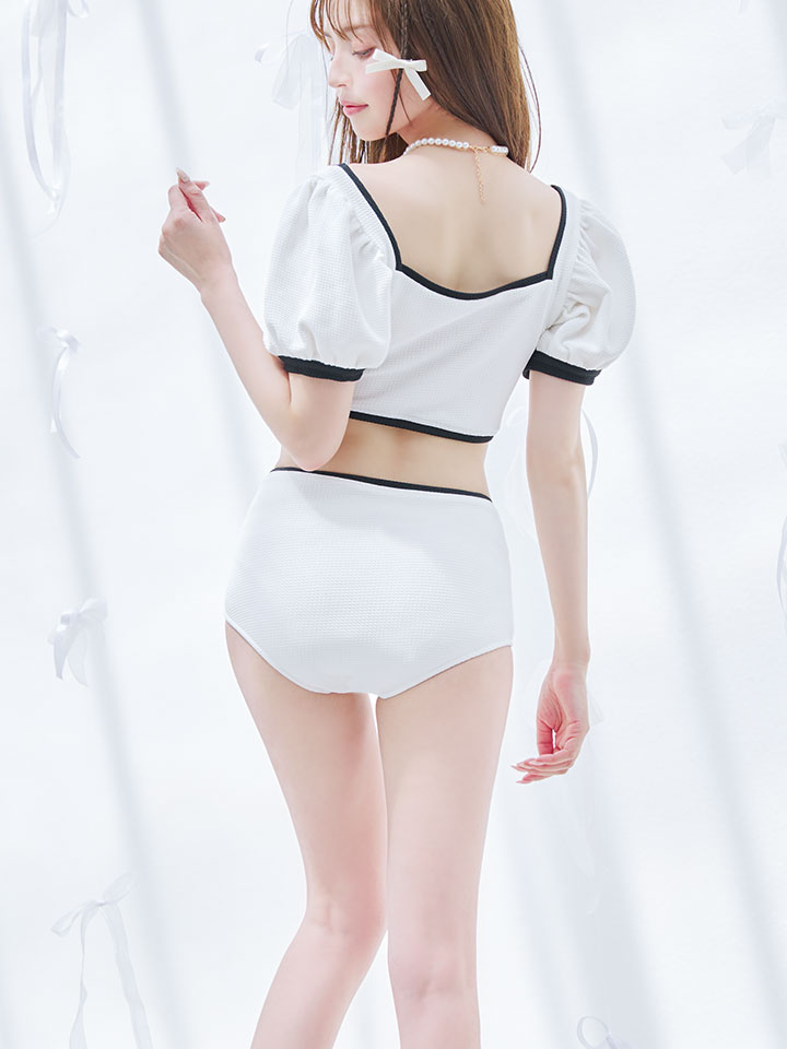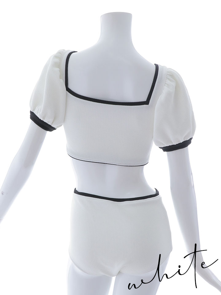 【即日発送!】【ビキニ】韓国っぽパフスリパイピングビキニ 2点セット【水着】[YMT] [M237dzj-24NN-W]