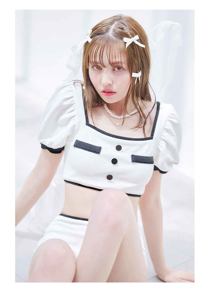 パフスリーブが可愛い韓国風ビキニ!