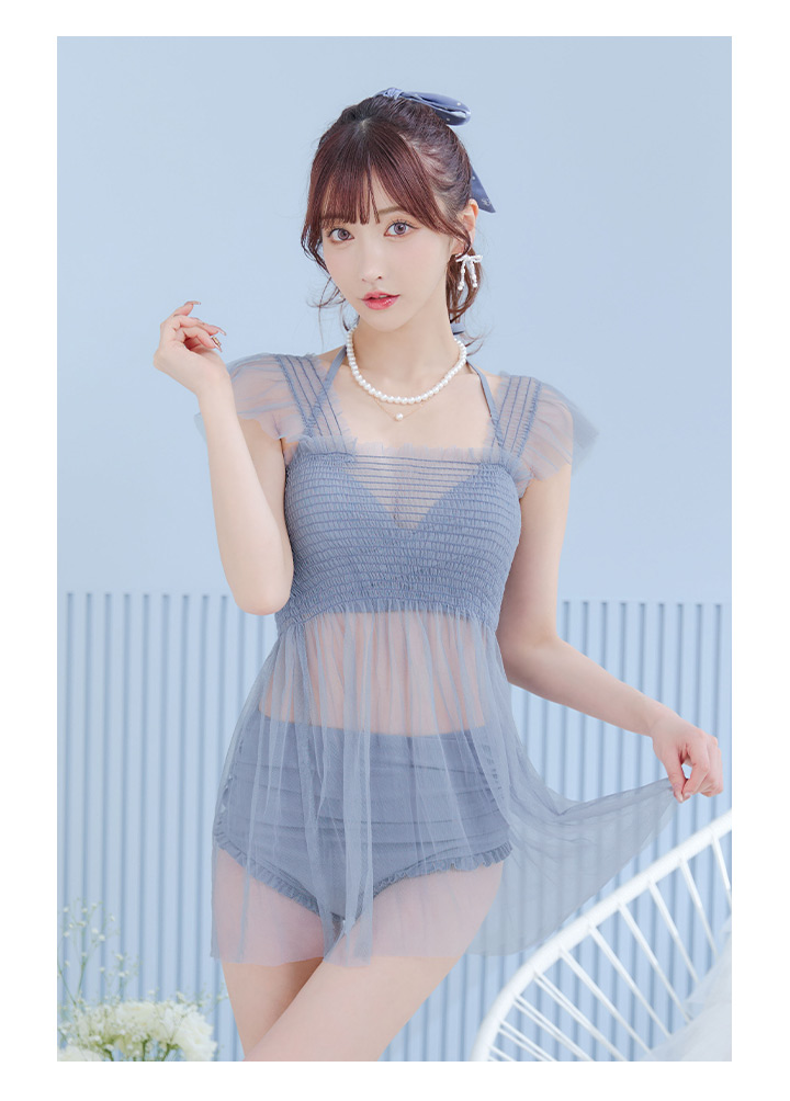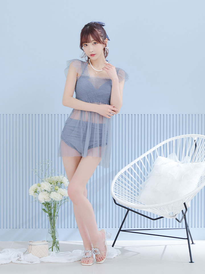 透明感抜群のシアーチュールにときめくファッション感あるビキニ。
