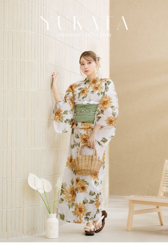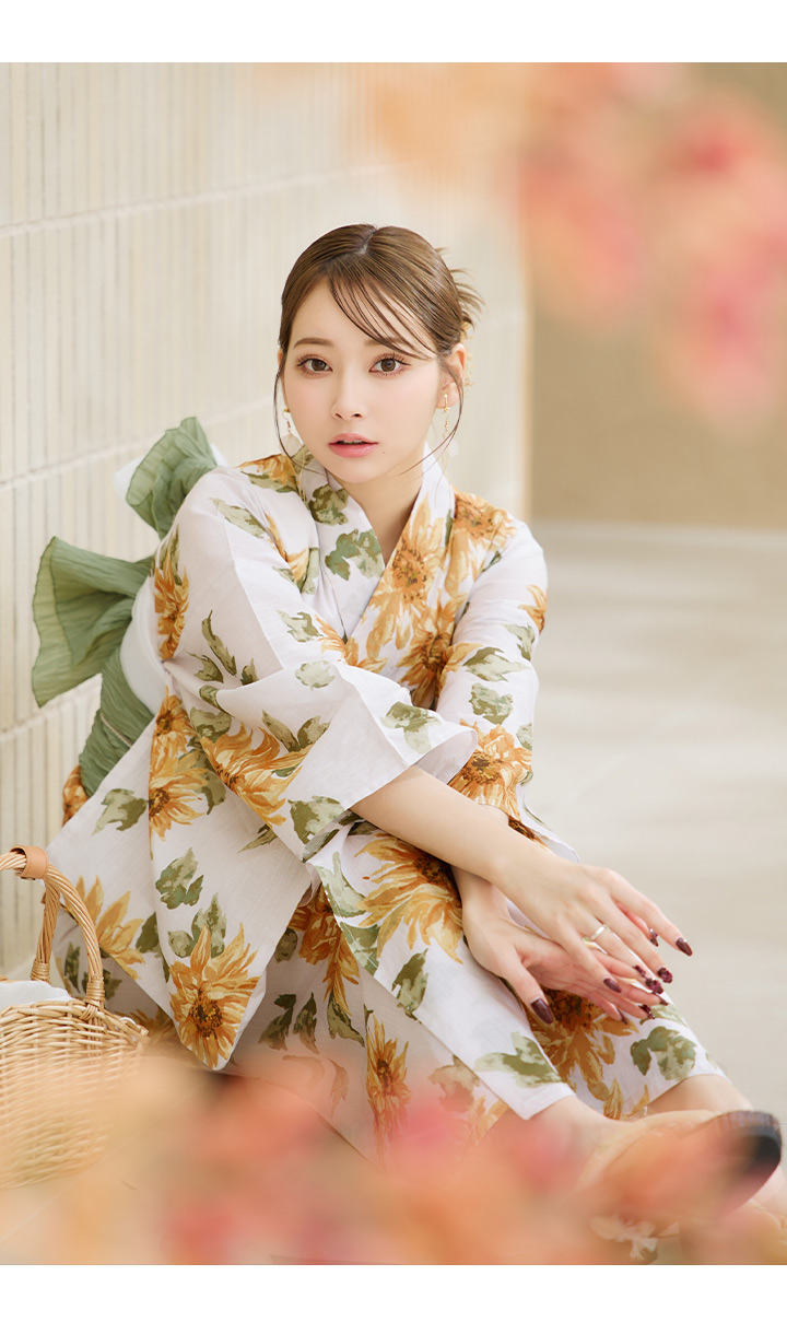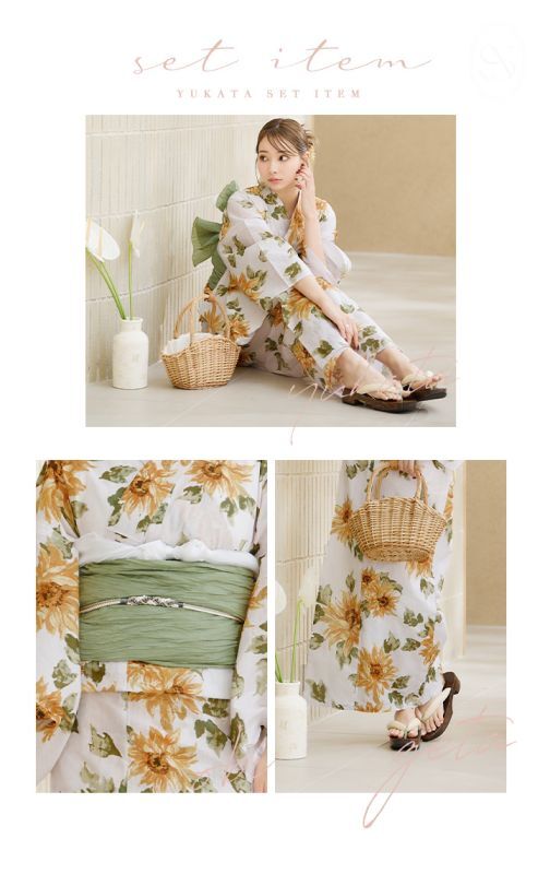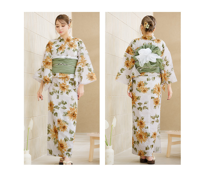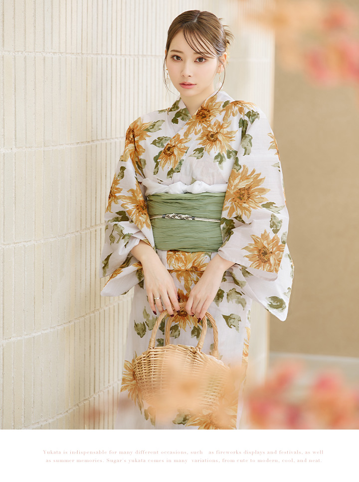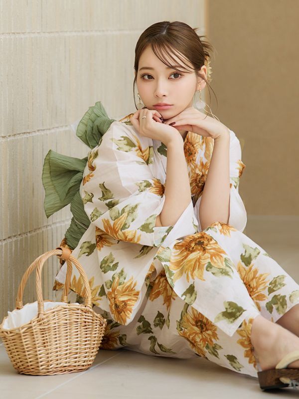 【即日発送】水彩向日葵浴衣 【浴衣3点セット 浴衣/帯/下駄】 [YMT] [Y-9044-wk-Y-F-24PY]
