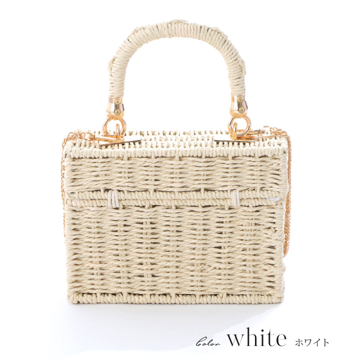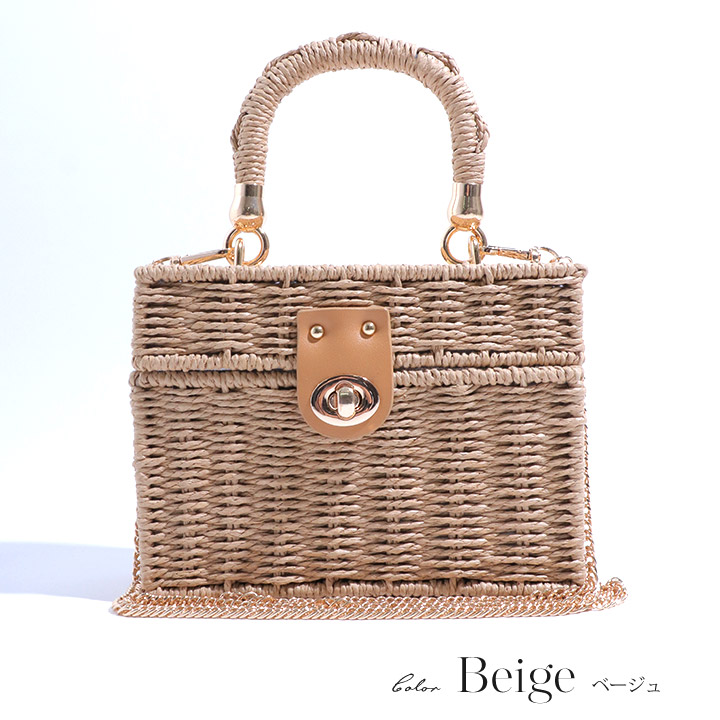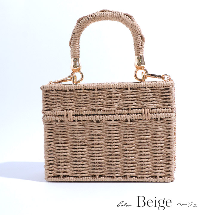 【ビキニ】【水着小物:ビーチバッグ】ショルダーチェーン付き/ ランタン編み/ スクエアかごバッグ[YMT]