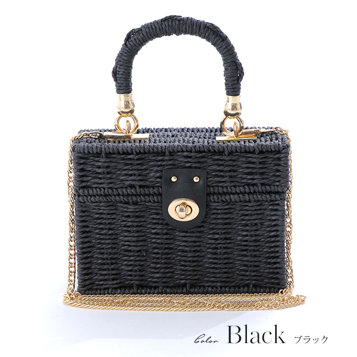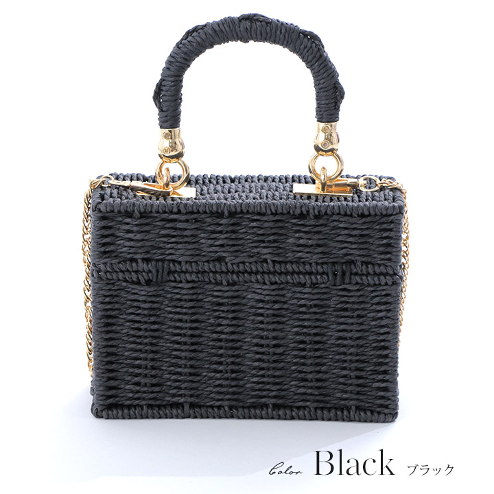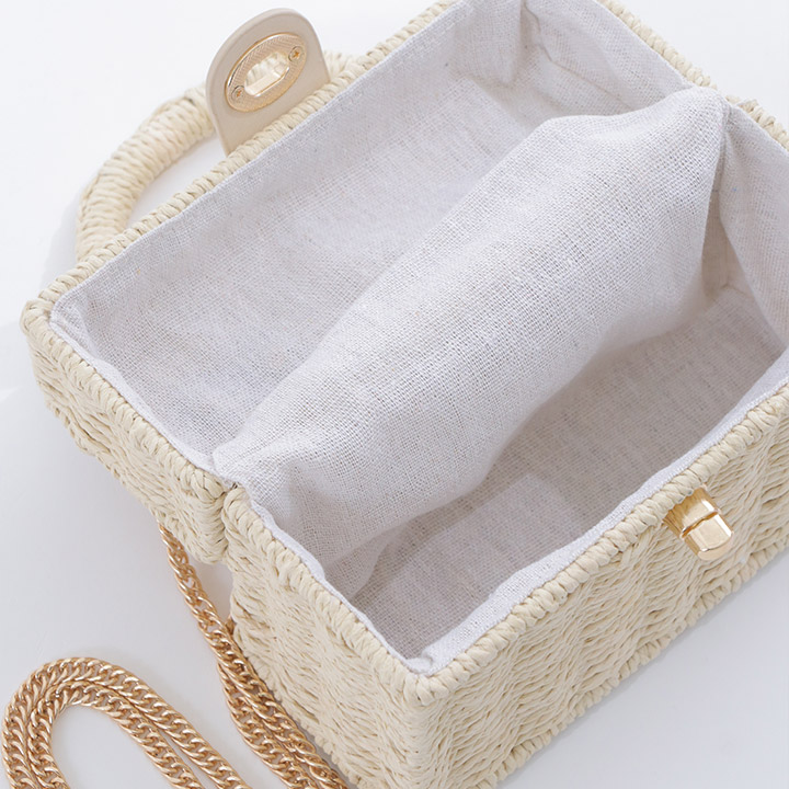 【ビキニ】【水着小物:ビーチバッグ】ショルダーチェーン付き/ ランタン編み/ スクエアかごバッグ[YMT] [MG-B009]