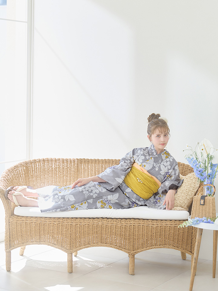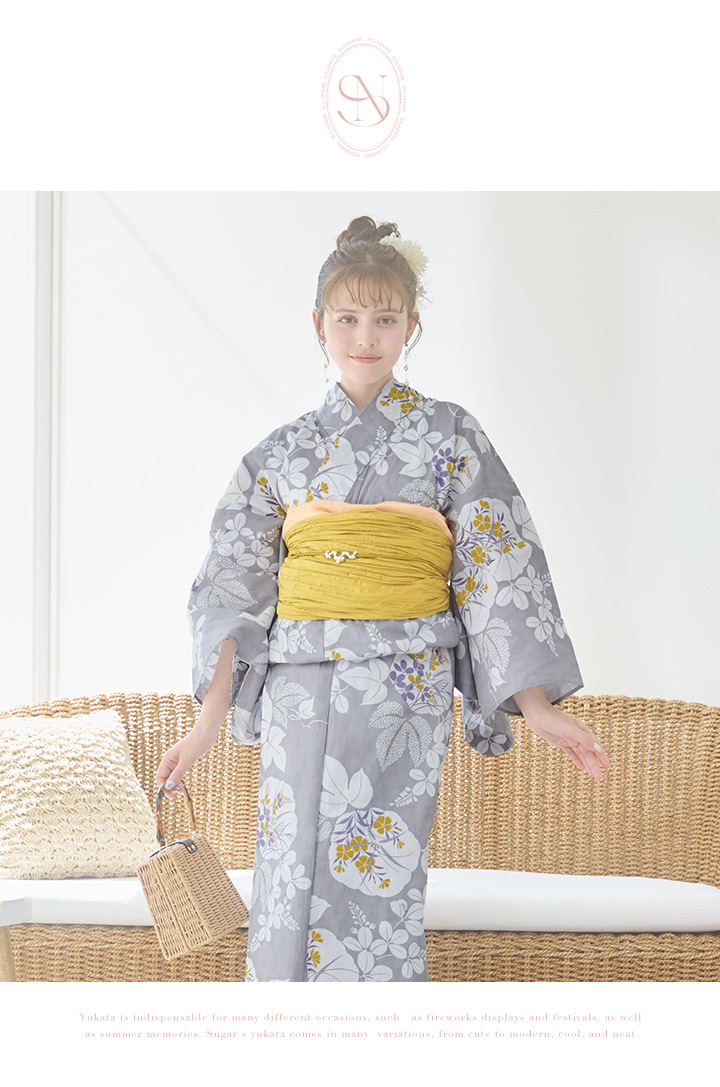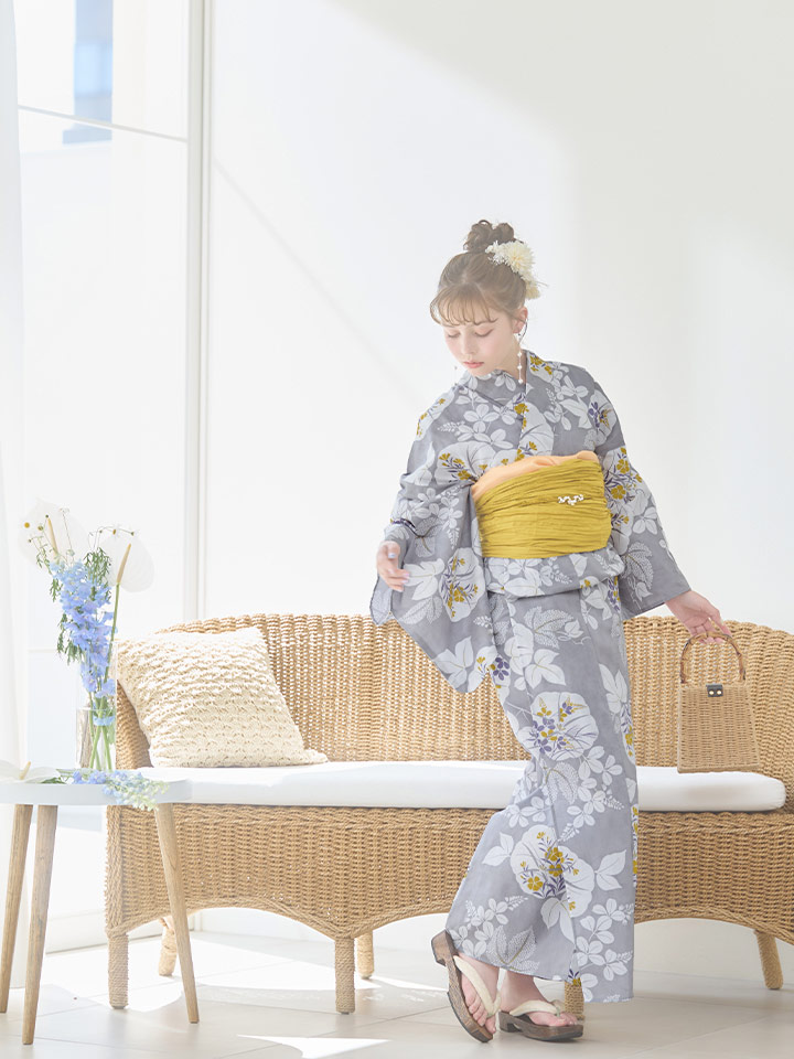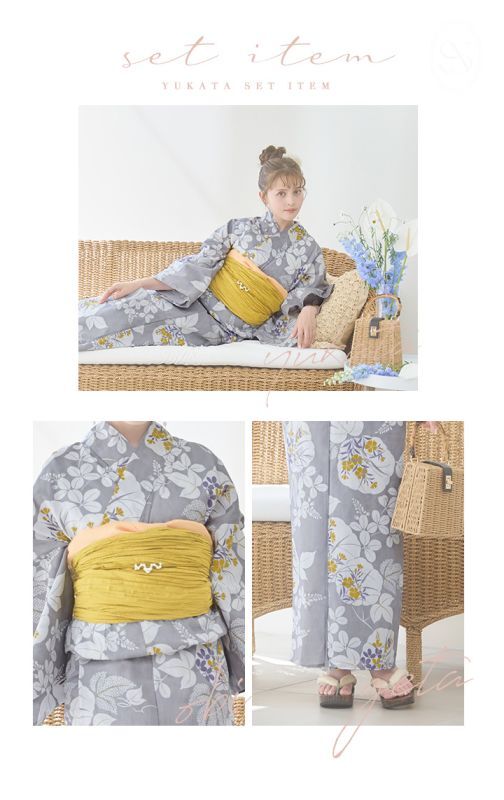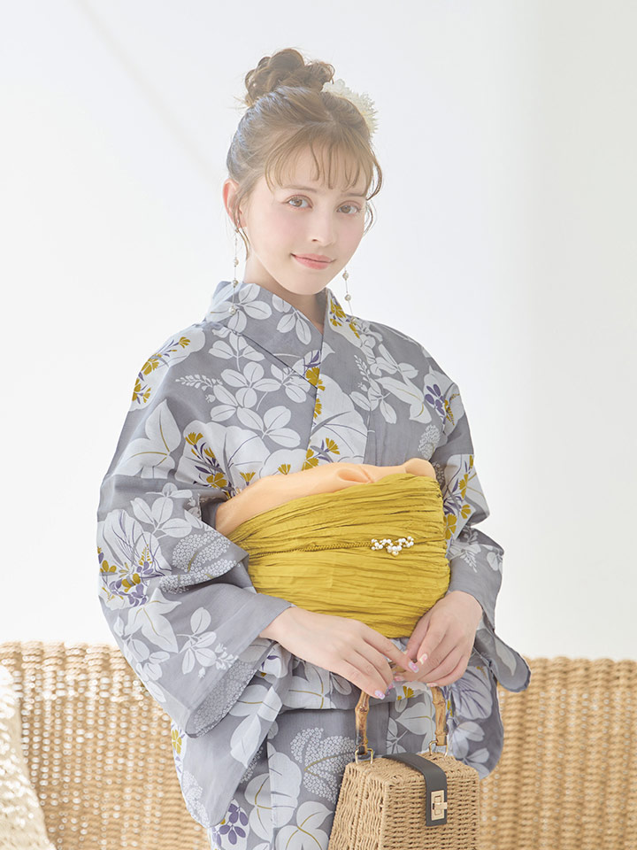 【即日発送】グレー×フラワー浴衣 【浴衣3点セット 浴衣/帯/下駄】 [YMT] [Y-8086-ok-GY-F-24NN]