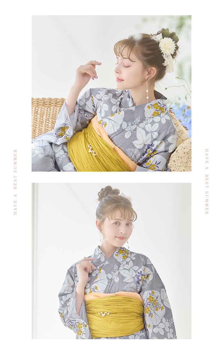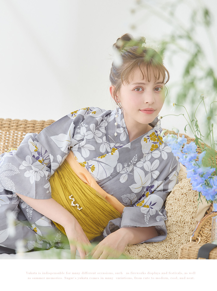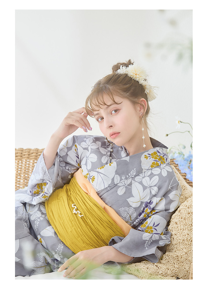 グレー地に小柄の愛らしい花々が散りばめられた大人可愛い夏浴衣♥