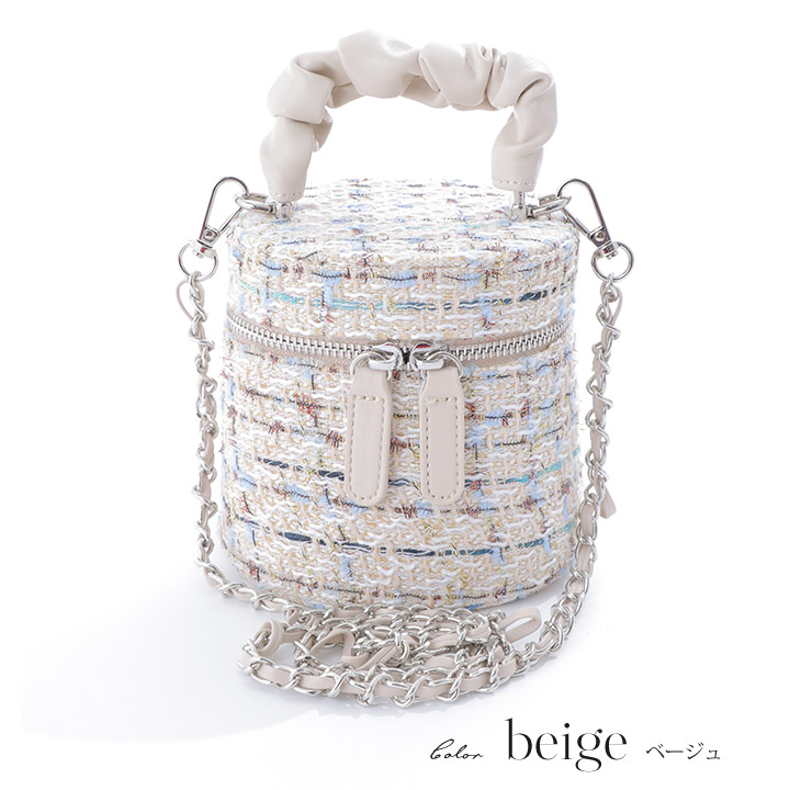 【水着小物:ビーチバッグ】ショルダーチェーン付き/ ツイード/ バニティバッグ[OF04] [B1022-2406]