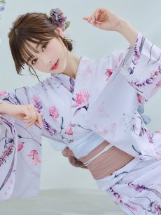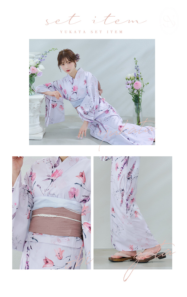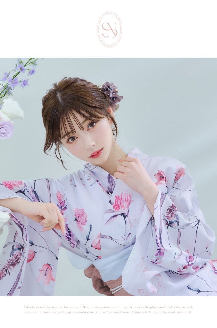 【即日発送】【Riuコラボ】ボタニカルフラワーと蝶々の浴衣 【浴衣3点セット 浴衣/帯/下駄】 [YMT] [Y-9057-nz-P-F-24RC]