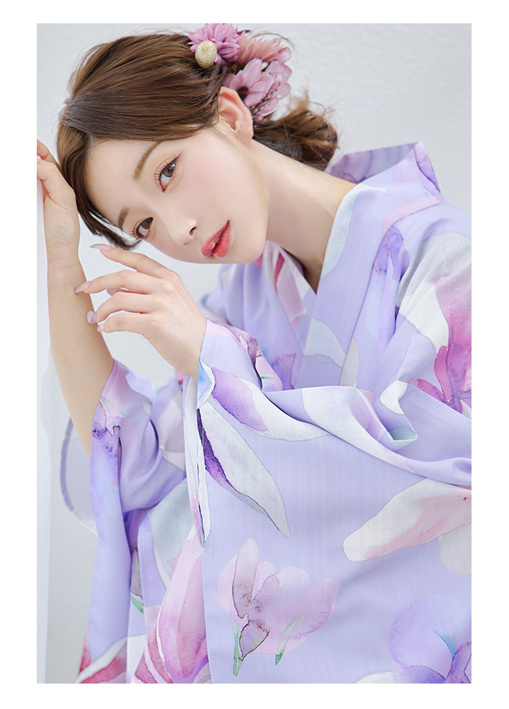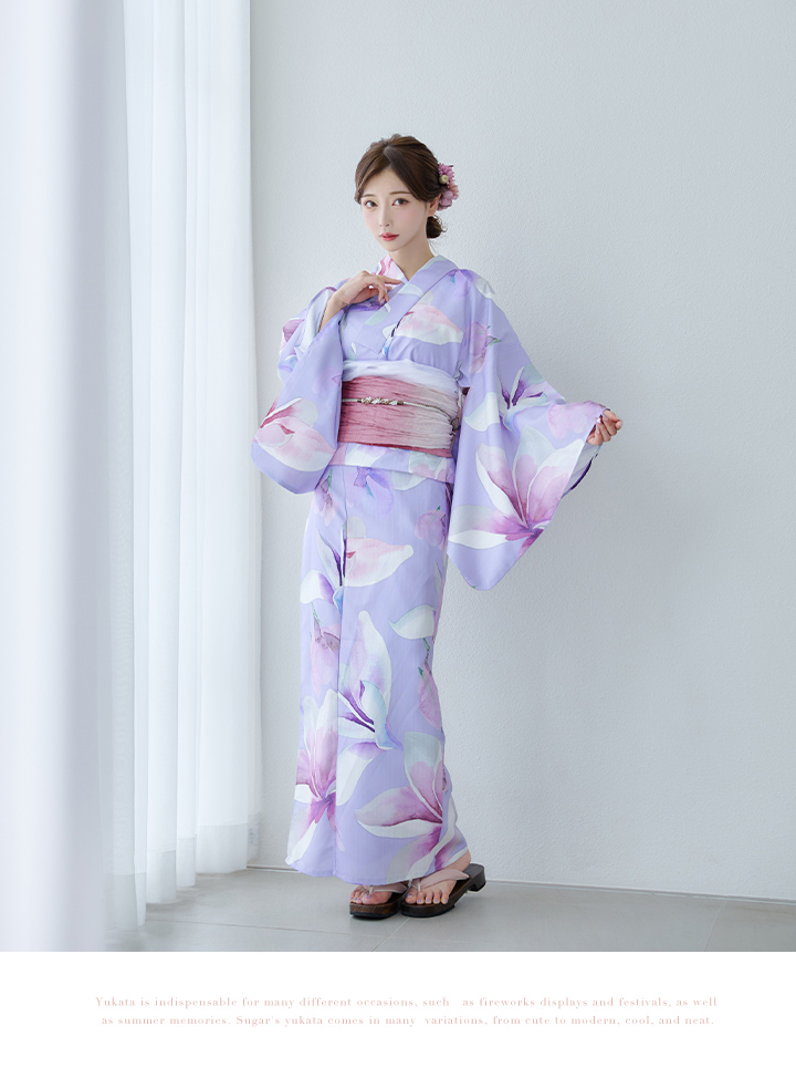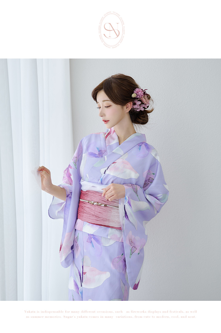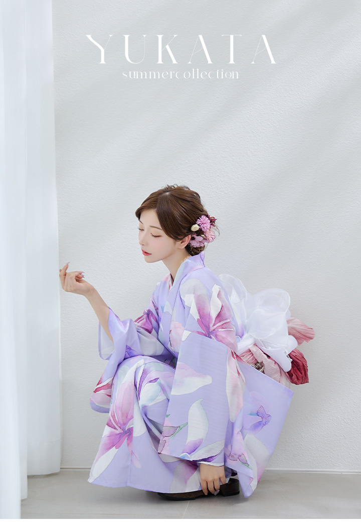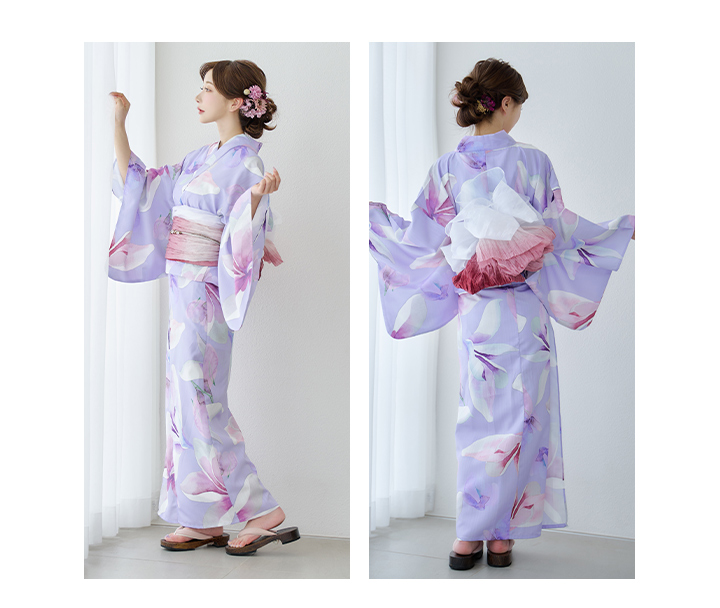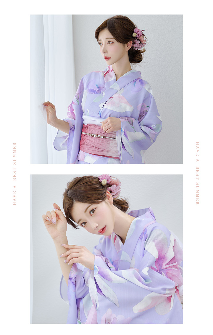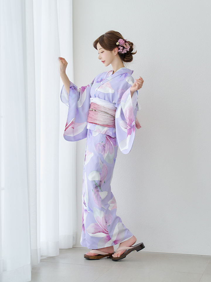 パープル地に咲く百合の花びらが上品で大人な清涼感のある浴衣