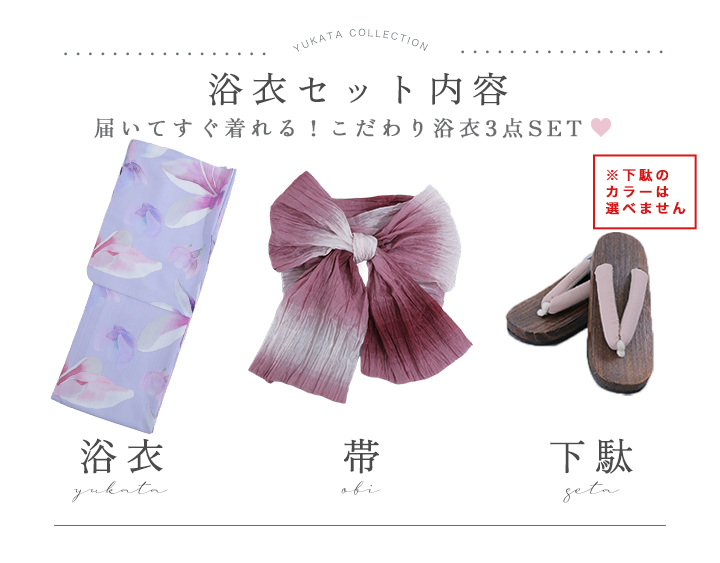 【即日発送】【Riuコラボ】パープル地に咲く百合浴衣 【浴衣3点セット 浴衣/帯/下駄】 [YMT] [Y-9058-nz-PL-F-24RC]