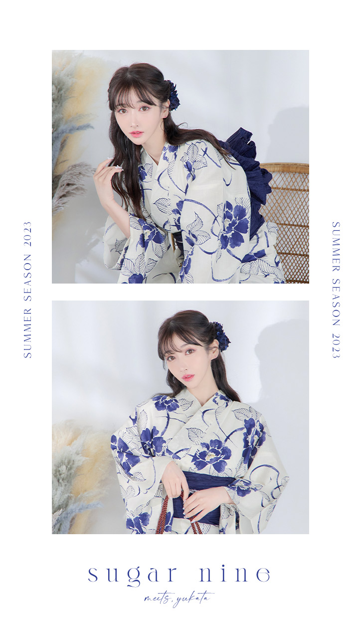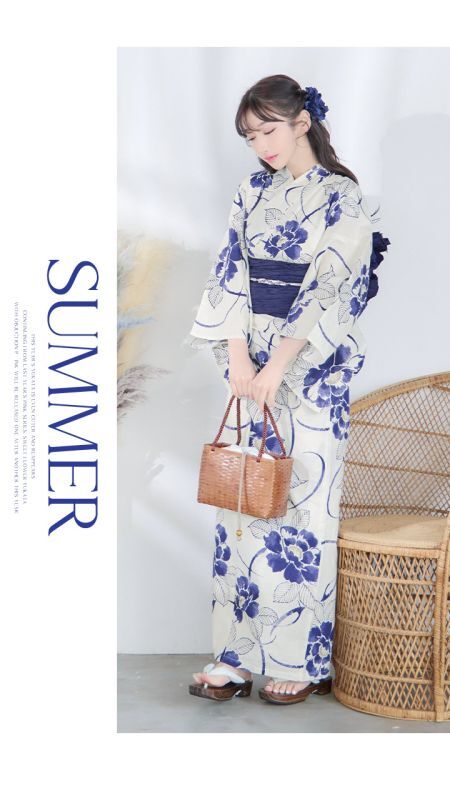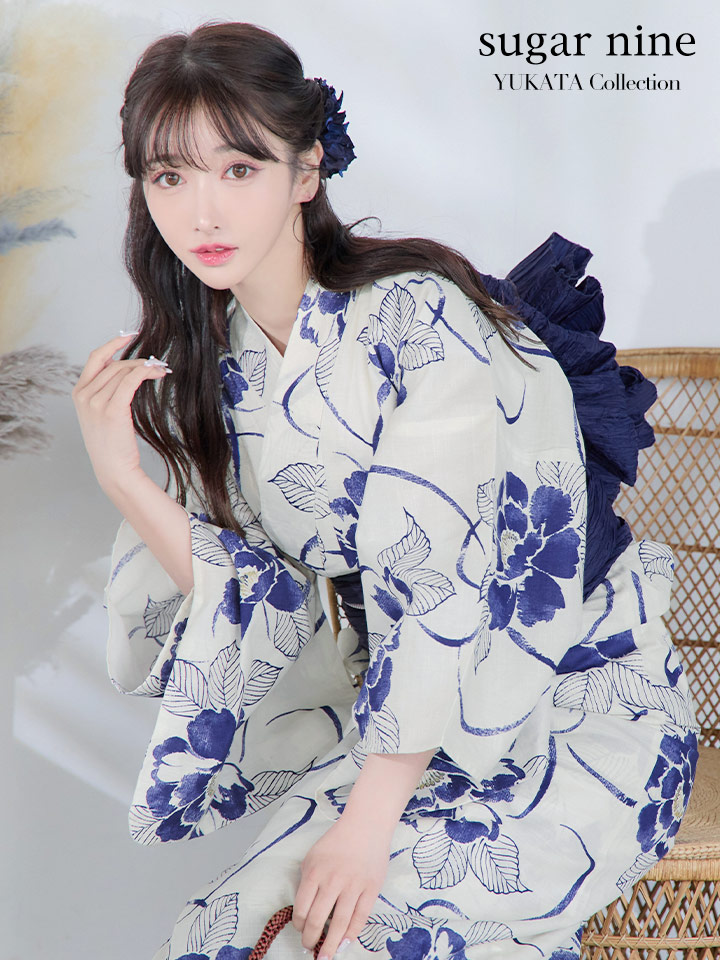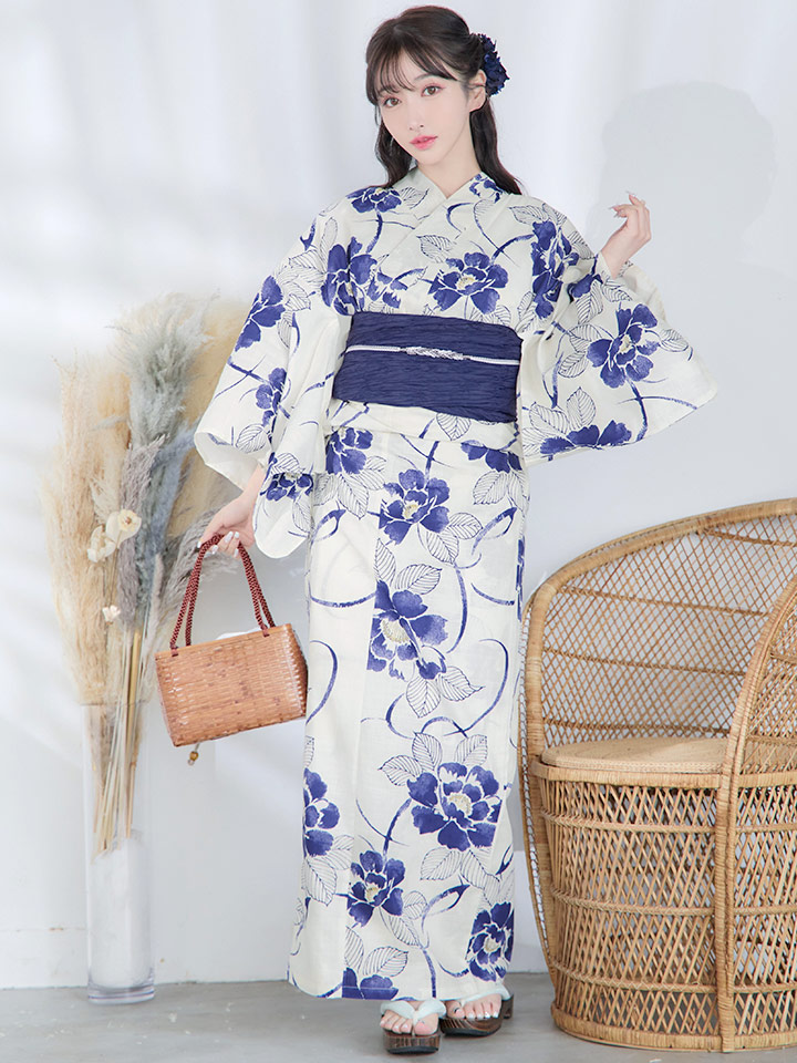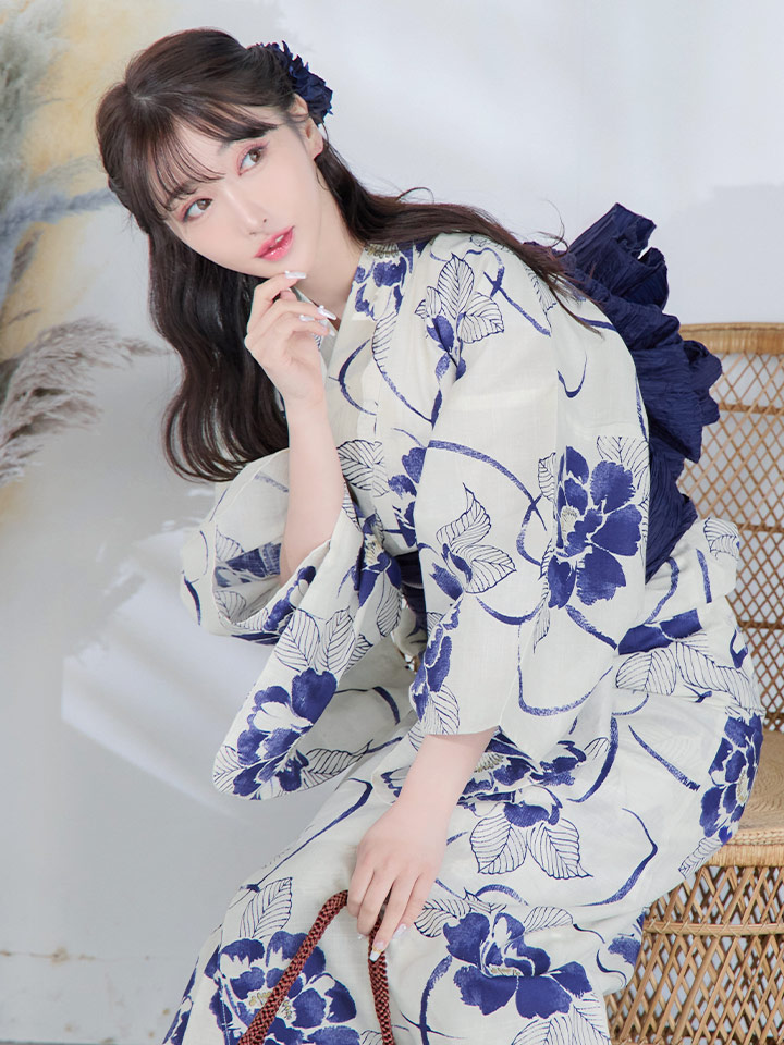 【即日発送】水彩椿の綺麗系浴衣 【浴衣3点セット 浴衣/帯/下駄】 [YMT] [Y-7113-wk-W-F-23RC]