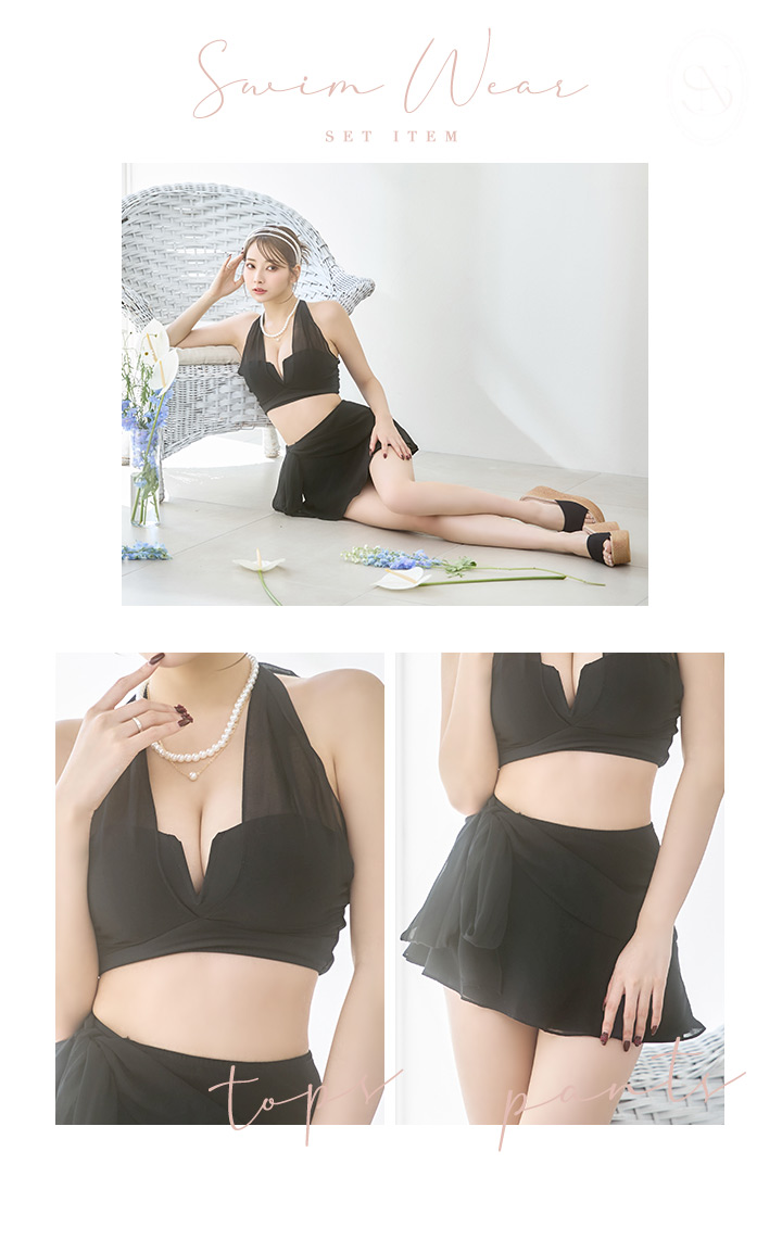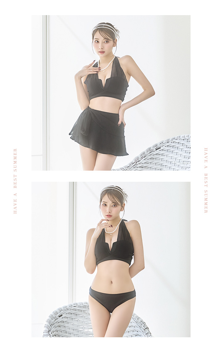 【即日発送】【ビキニ】【水着】シアーホルターネックスカート付きビキニ 3点セット[YMT] [M248dzj-24PY-B]