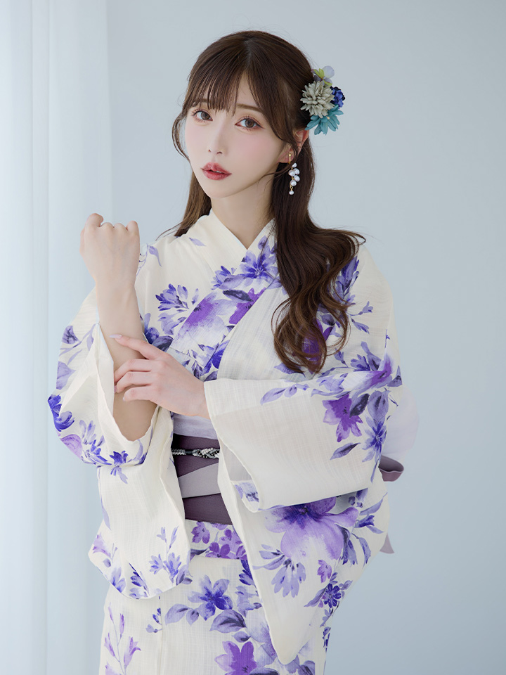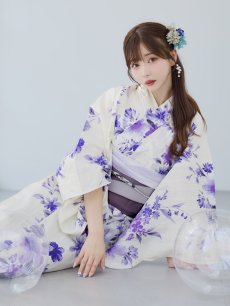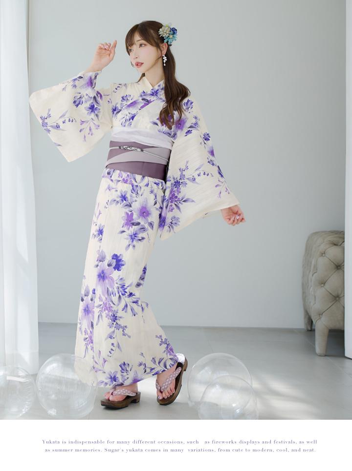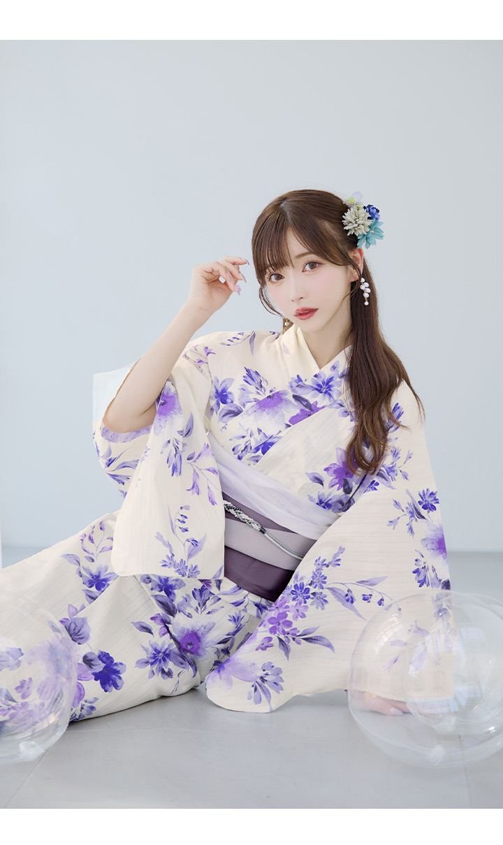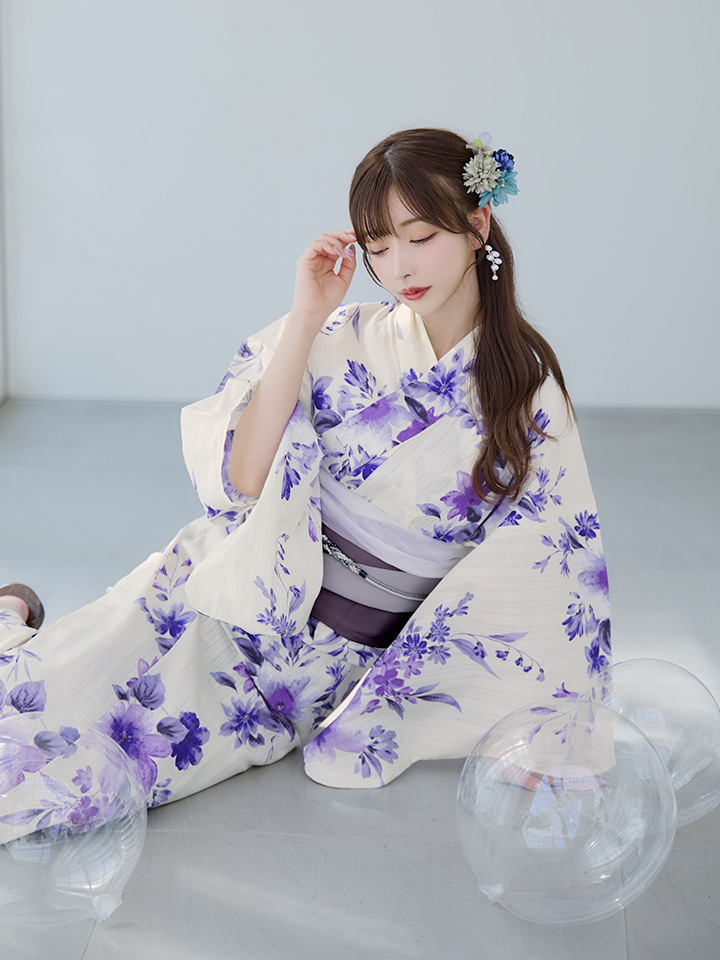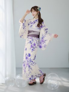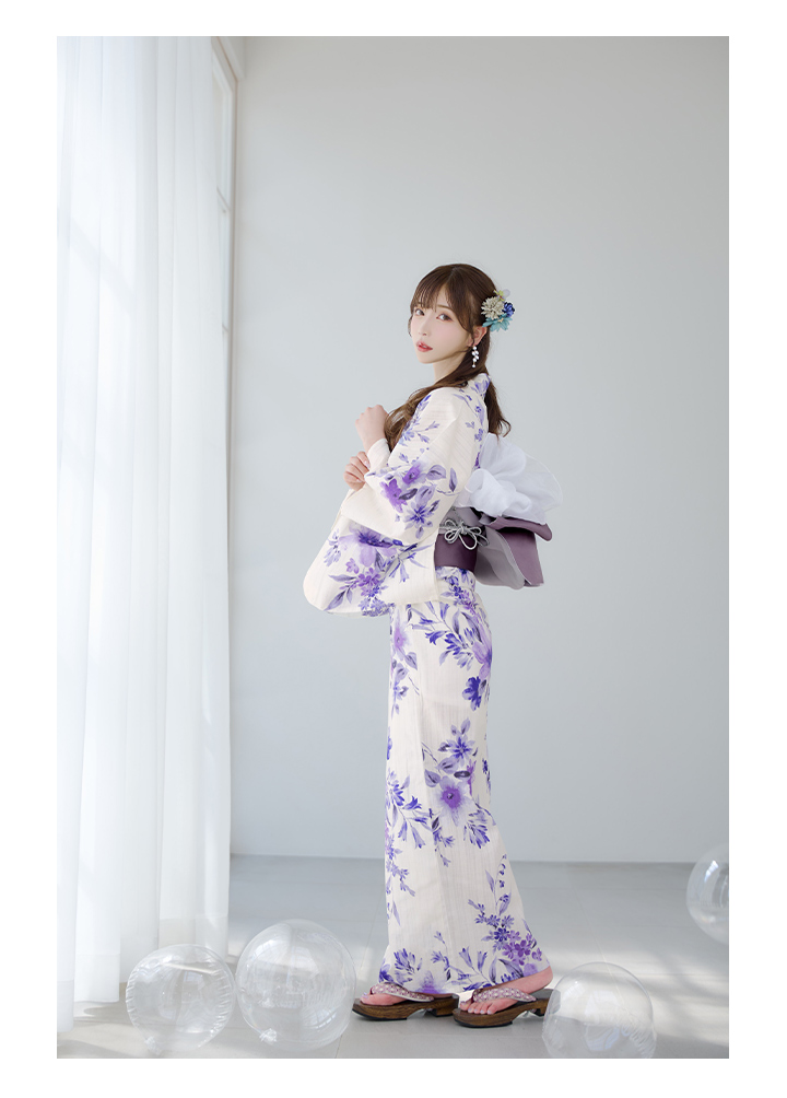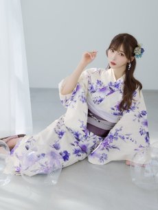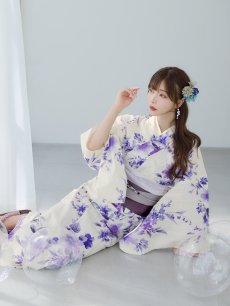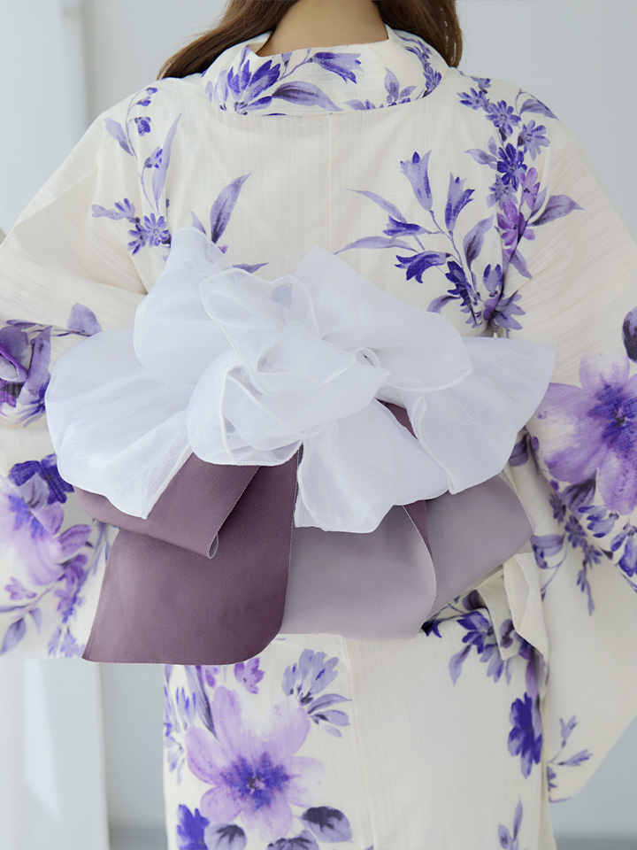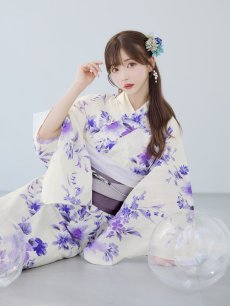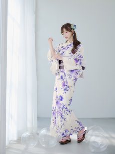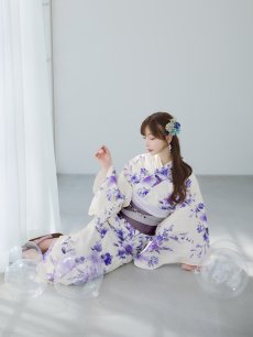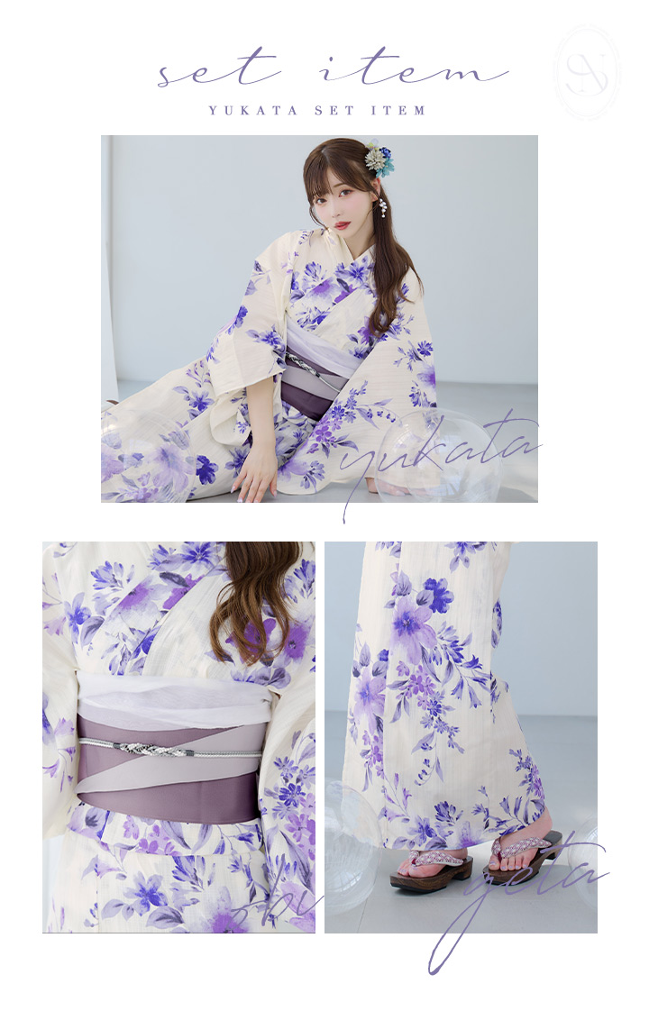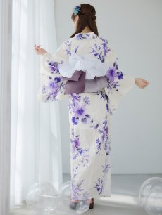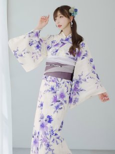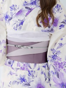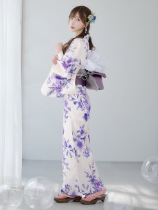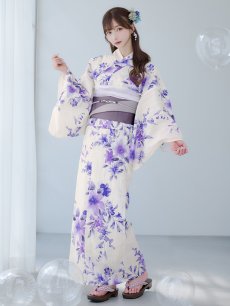 【即日発送】白地xパープルグラデーション浴衣 【浴衣3点セット 浴衣/帯/下駄】 [YMT] [Y-7085-ok-W-F-24RC]
