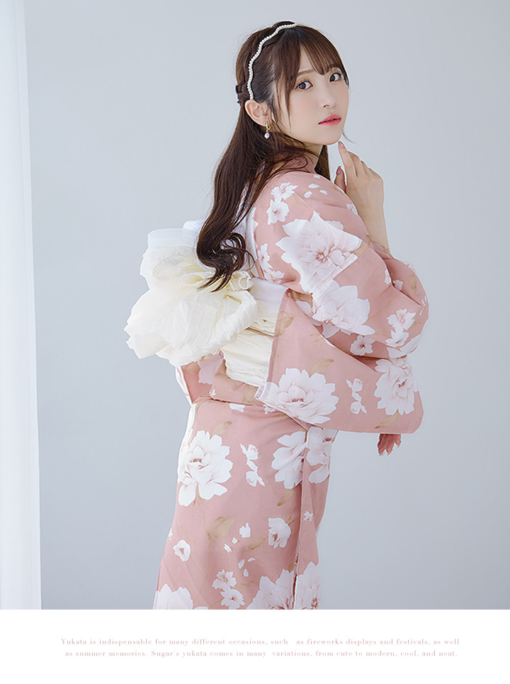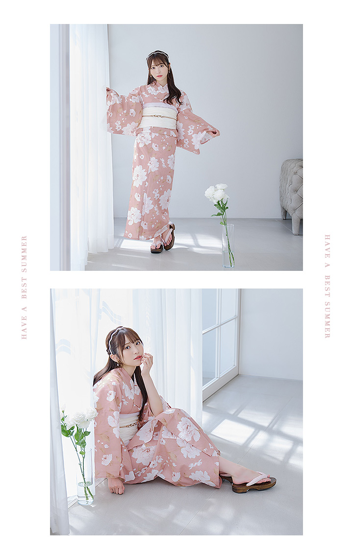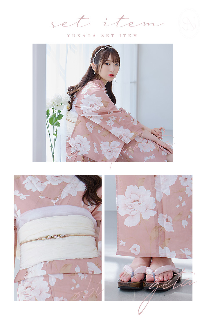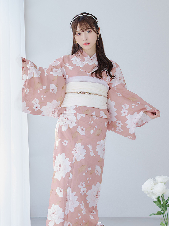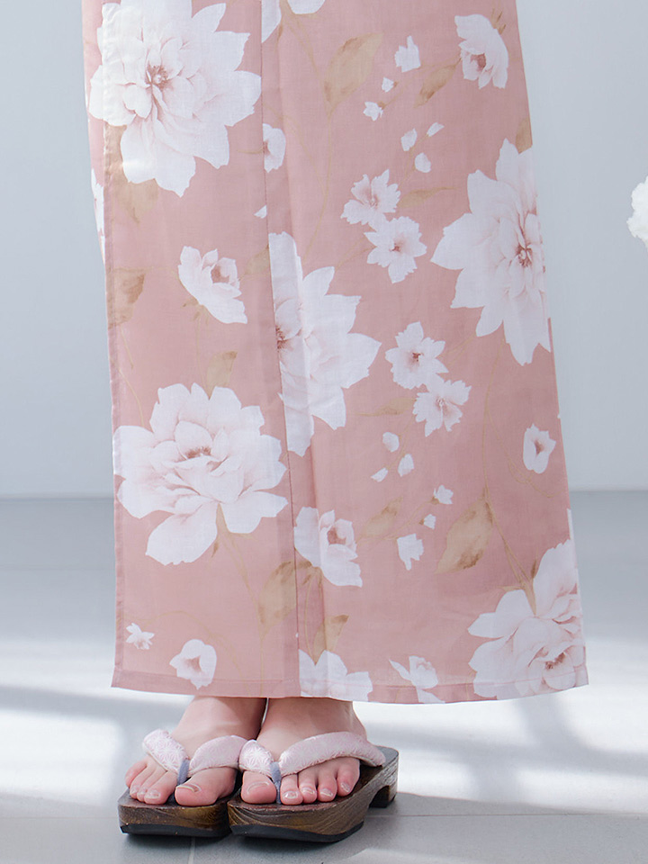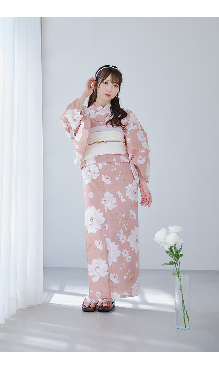 【即日発送】【浴衣】くすみピンク地のホワイト牡丹浴衣 【浴衣3点セット 浴衣/帯/下駄】 [YMT] [Y-7032-kj-P-F-24KY]