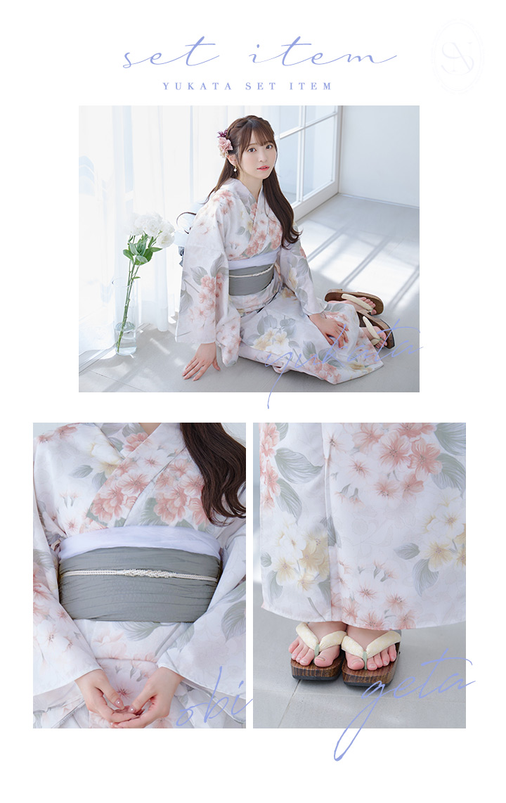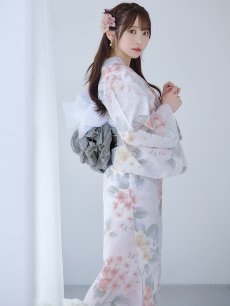 【浴衣セール!】【即日発送】ホワイトベージュ紫陽花浴衣 【浴衣3点セット 浴衣/帯/下駄】 [YMT]