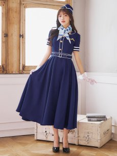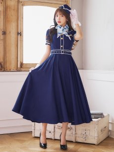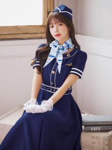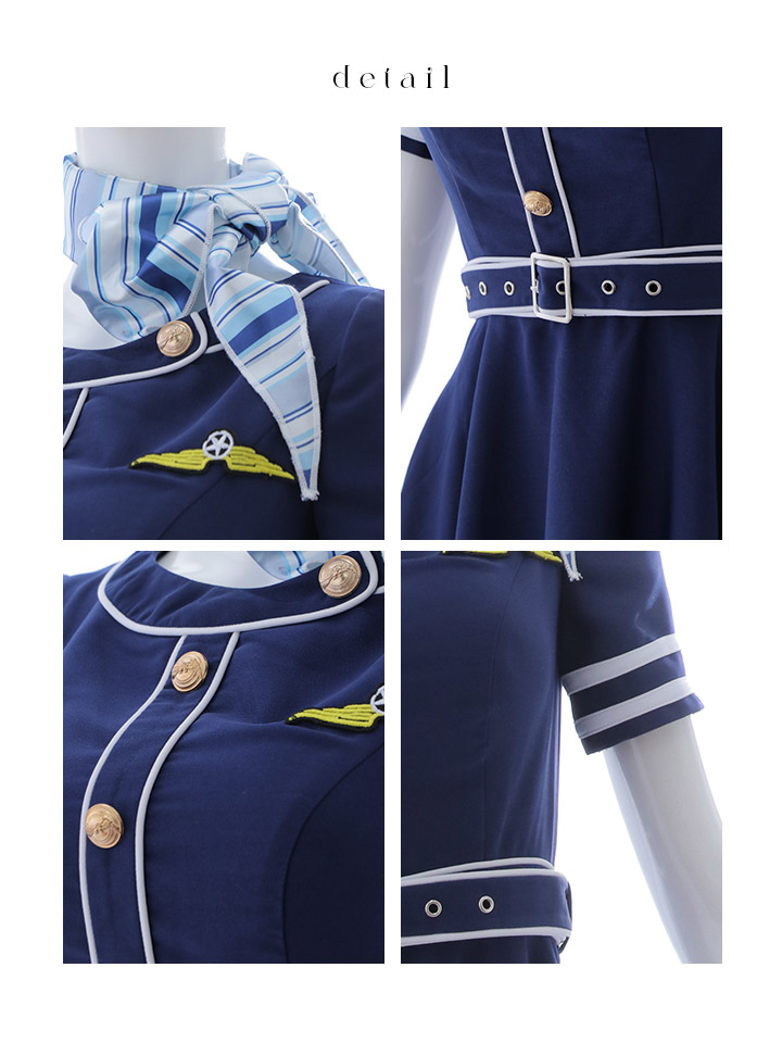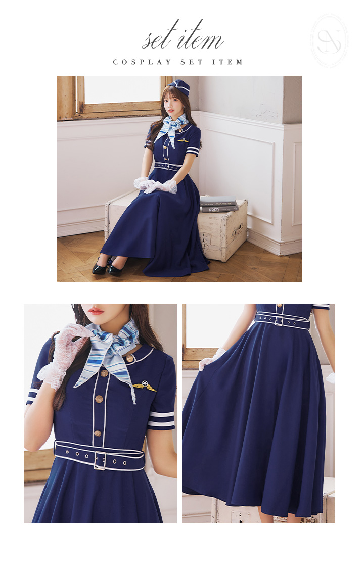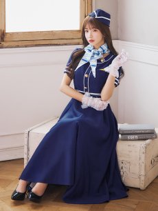 【即日発送!】【ハロウィン】CAロングフレアワンピース 【コスプレ5点セット】 【S-XLサイズ/1カラー】[HC03] [HW-193-SB-dzk-24EM]
