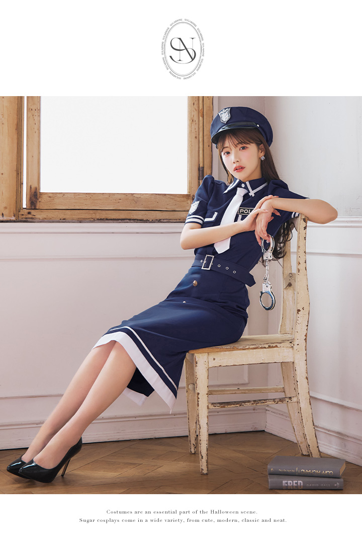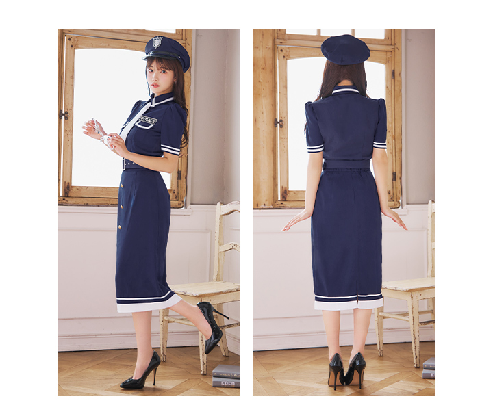 ポリス 警察 カッコいい かっこいい セクシー お仕事 おしごと 文化祭 体育祭 お揃いコーデ おそろいコーデ タイト ワンピース 仕事服 コスプレ ミディアム丈 ミモレ丈 露出が少ない ロングスカート