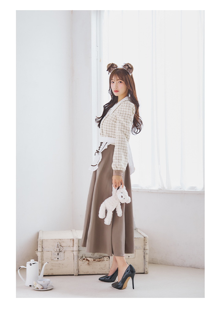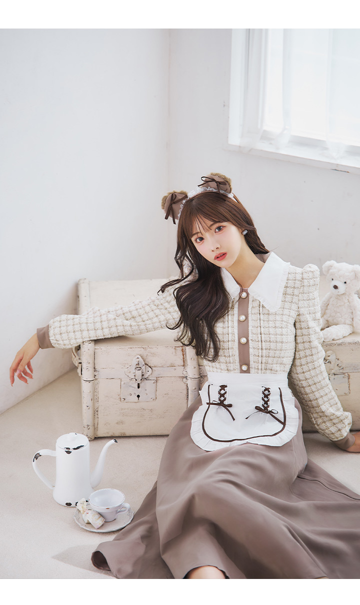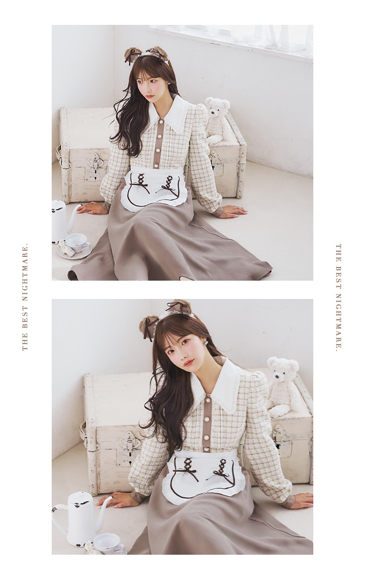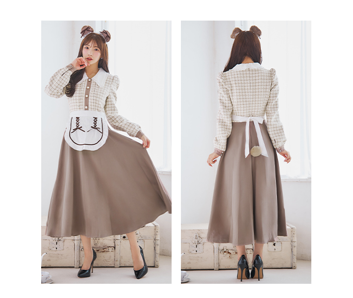 メイド めいど ワンピース かわいい 制服 コスプレ ミディアムスカート 長袖 ロングスリーブ 仕事服 ミディアム丈 ミモレ丈 露出が少ない ロングスカート くま ベア