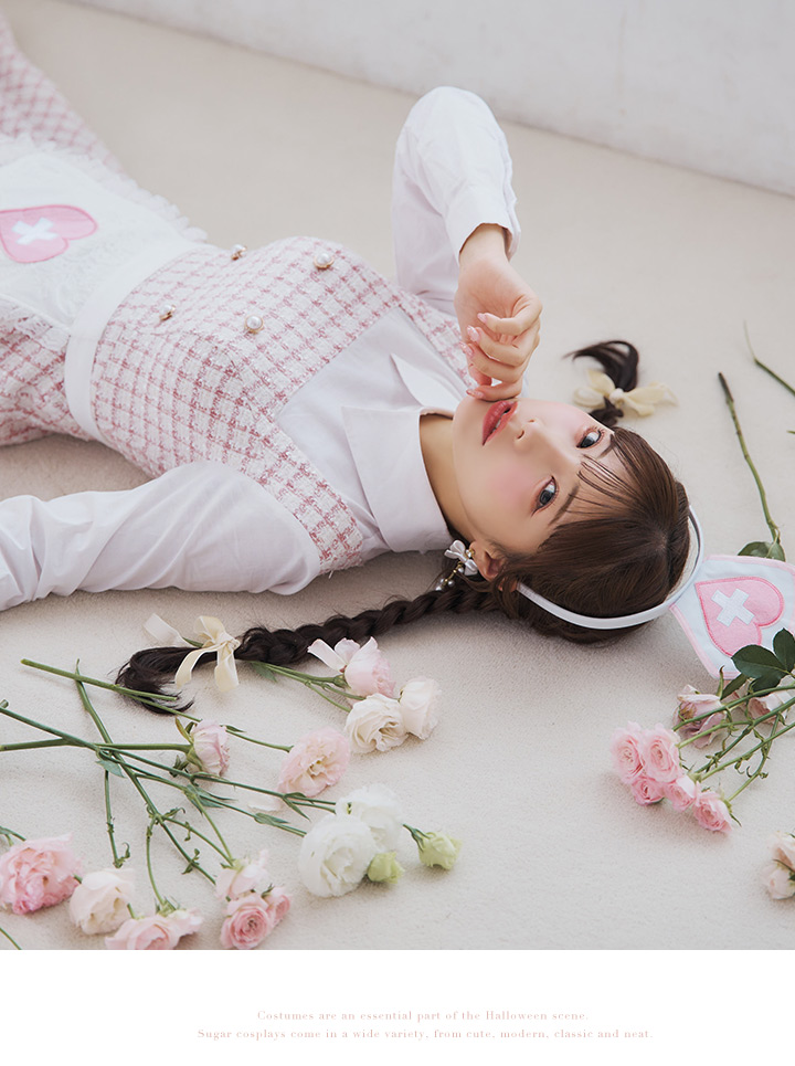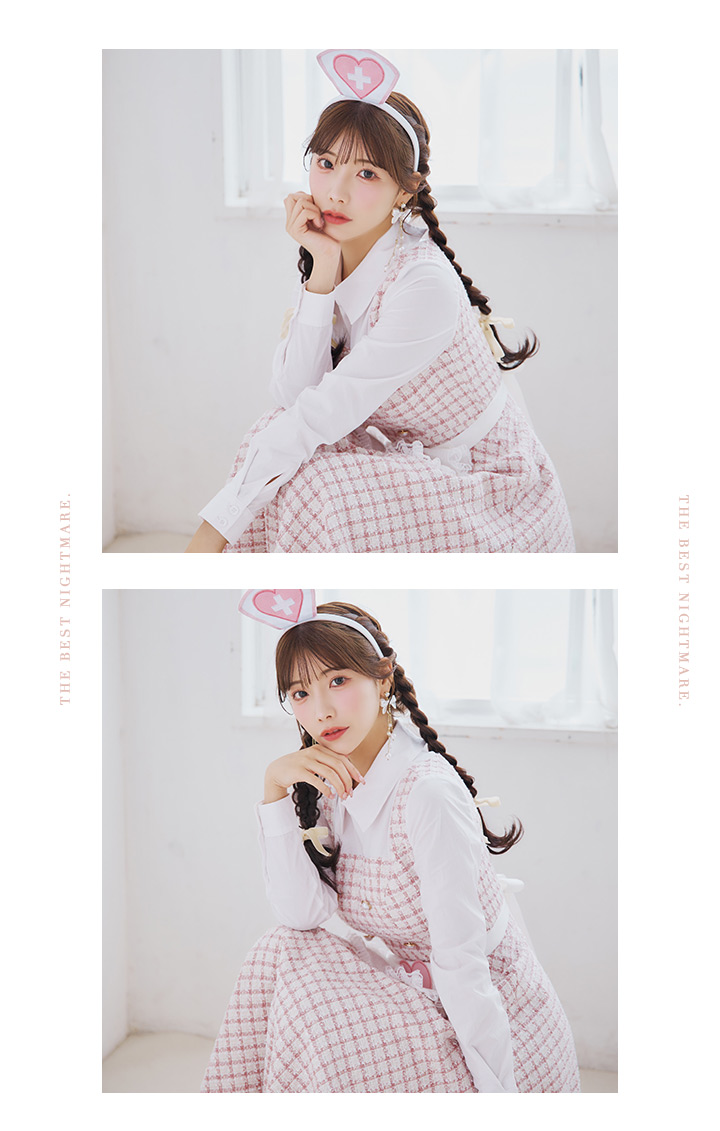 ミルキーカラーで甘くガーリーなナースコスプレ。