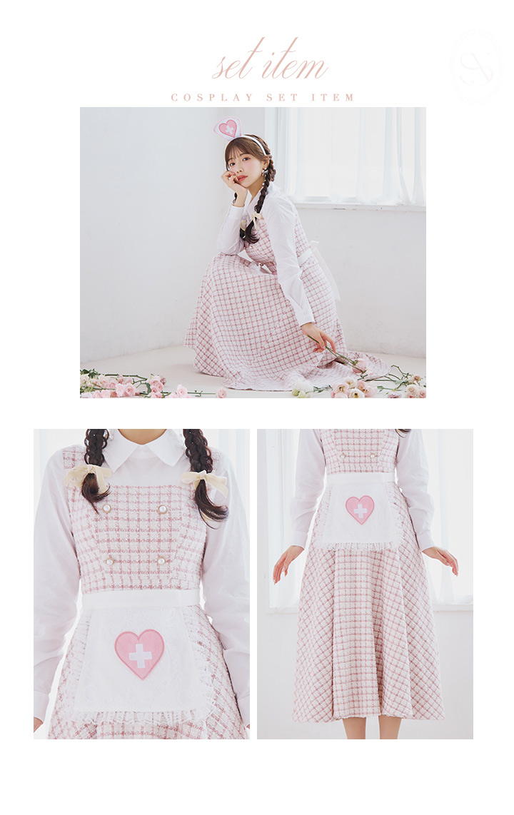 看護師 ナース ツイード リボン 甘い あざと コンカフェ スイート あまい 仕事服 ミディアム丈 ミモレ丈 露出が少ない ロングスカート 長袖 ロングスリーブ