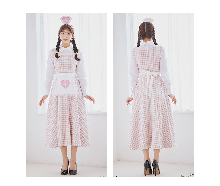 【SALE!!】【即日発送!】【ハロウィン】ナースツイードロングフレア 【コスプレ3点セット】 【S-XLサイズ/1カラー】[HC03]