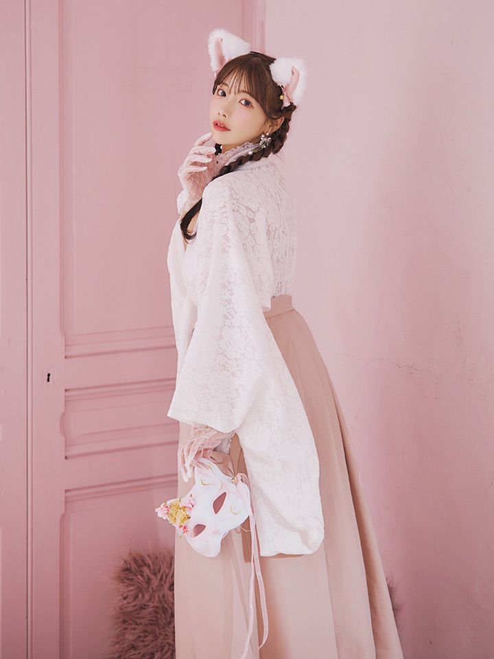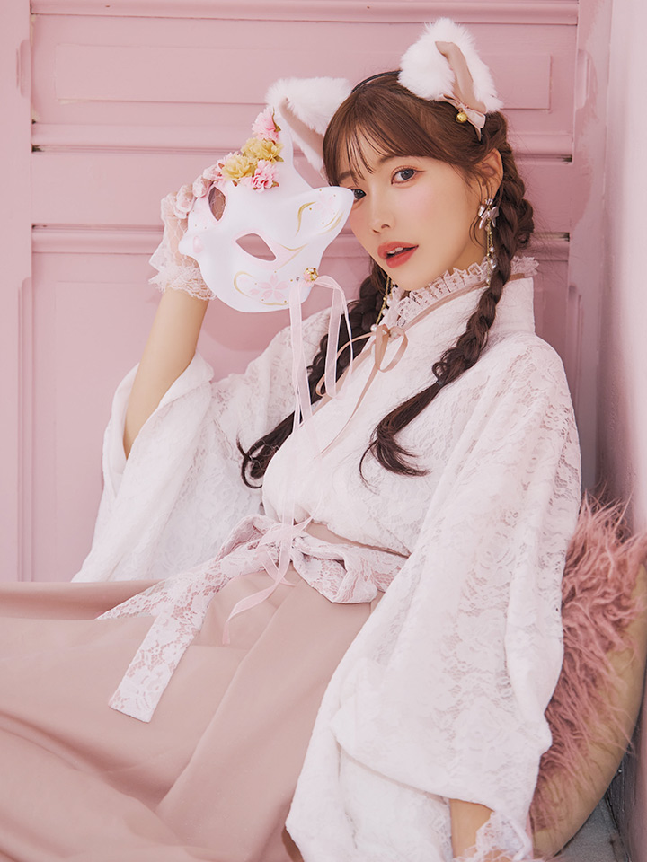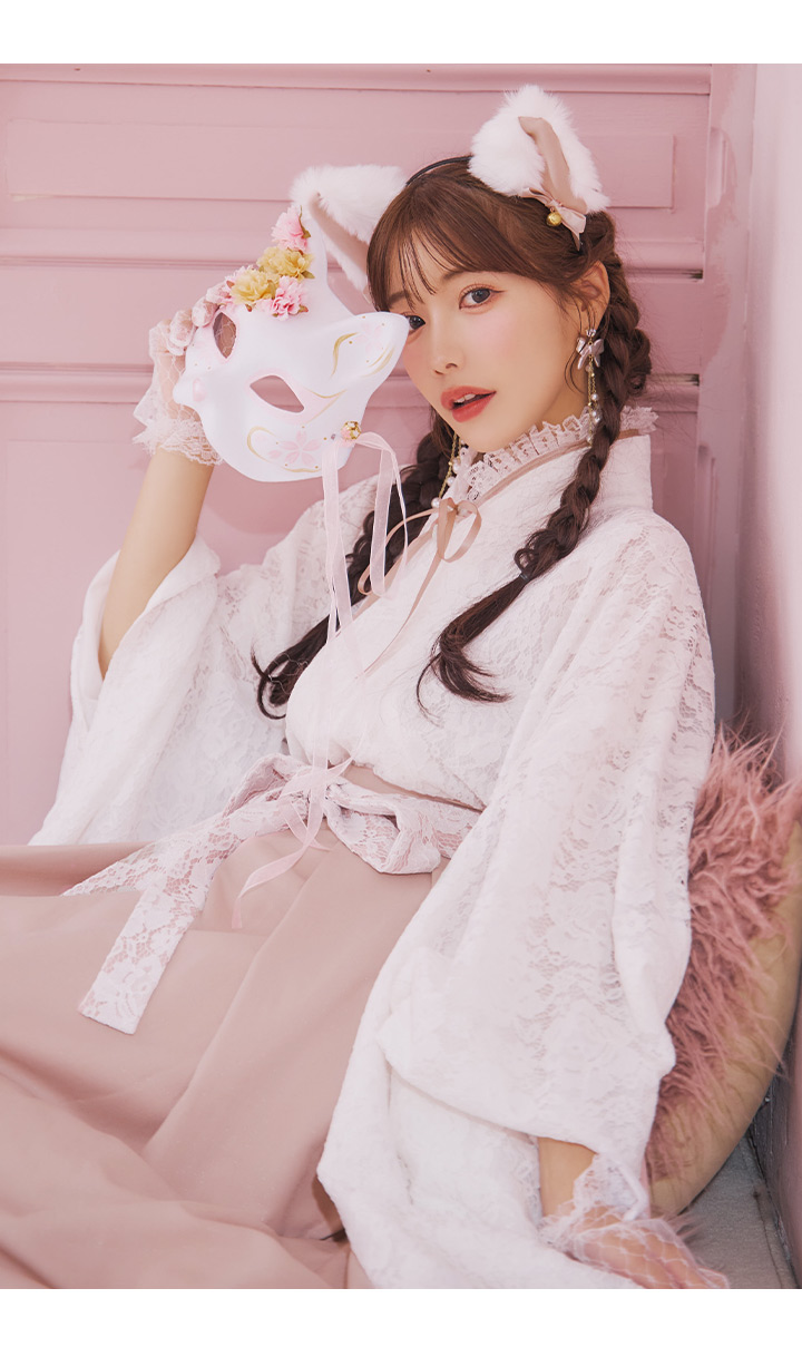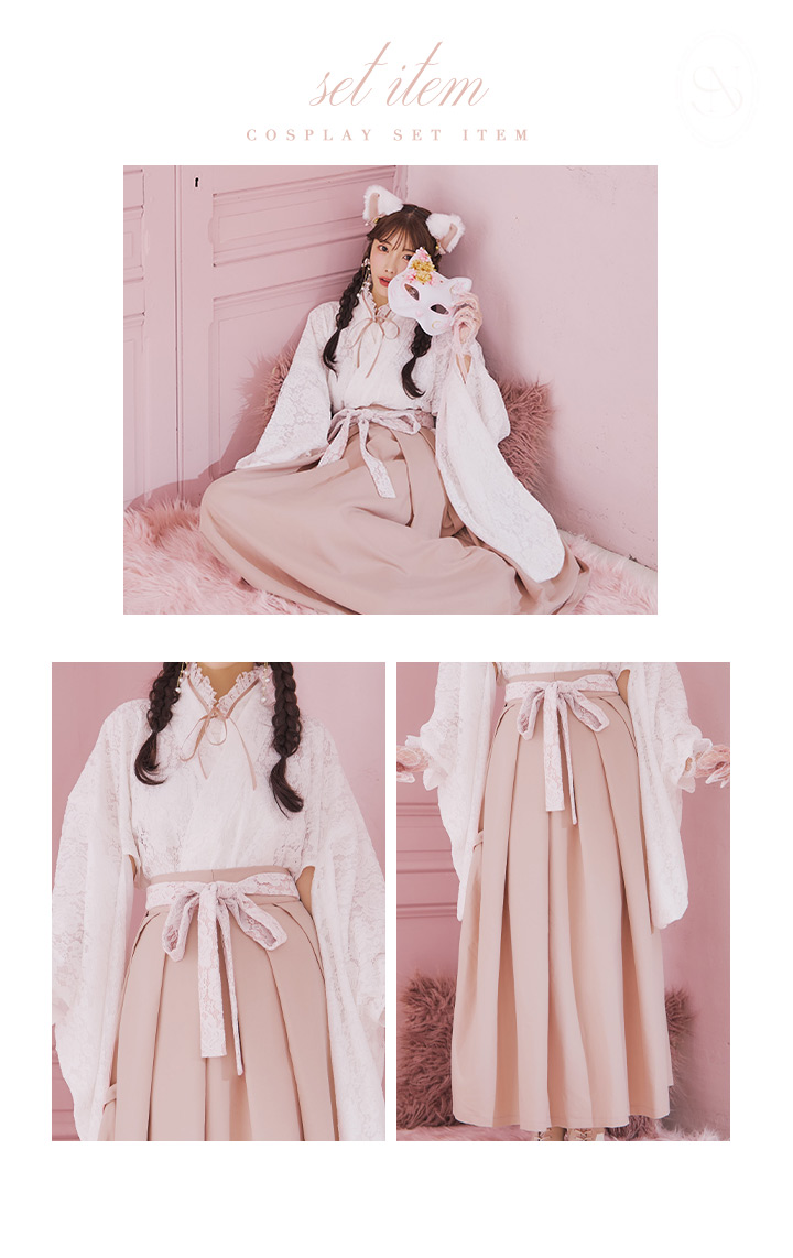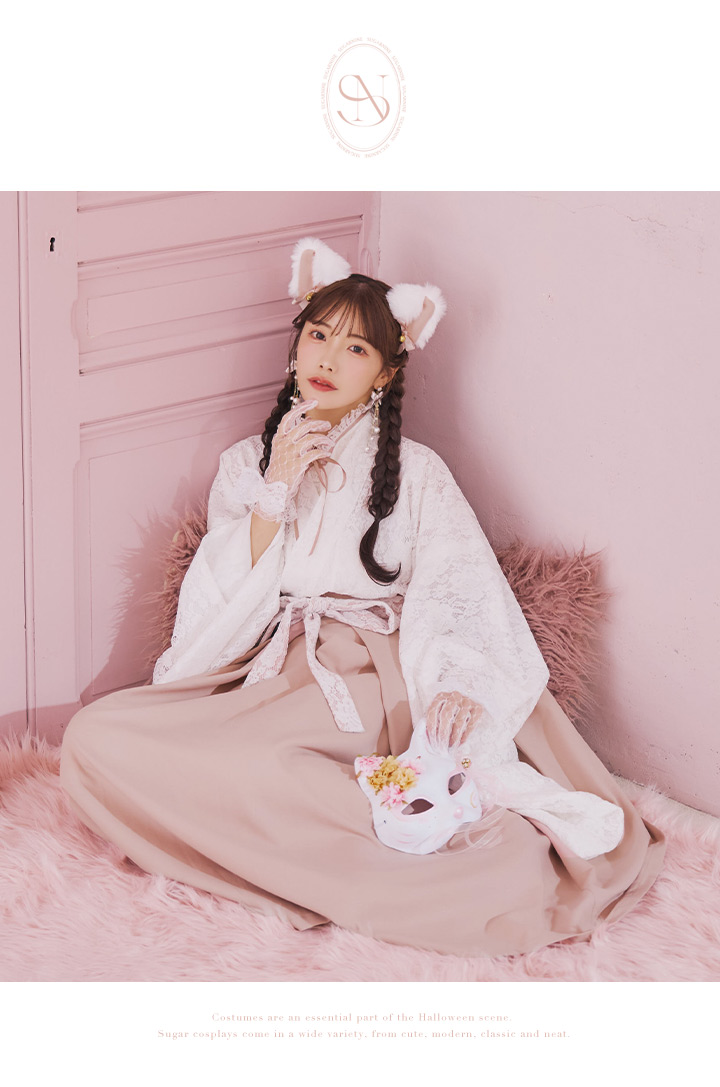【即日発送!】【ハロウィン】猫巫女レース袴 【コスプレ5点セット】 【FREEサイズ/2カラー】[[HC03]-OMN]