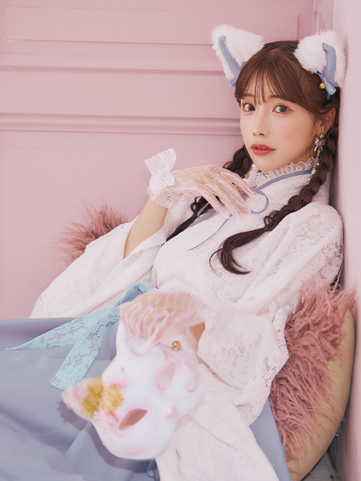 繊細なレースとミルキーカラーでロマンティックに着こなして。