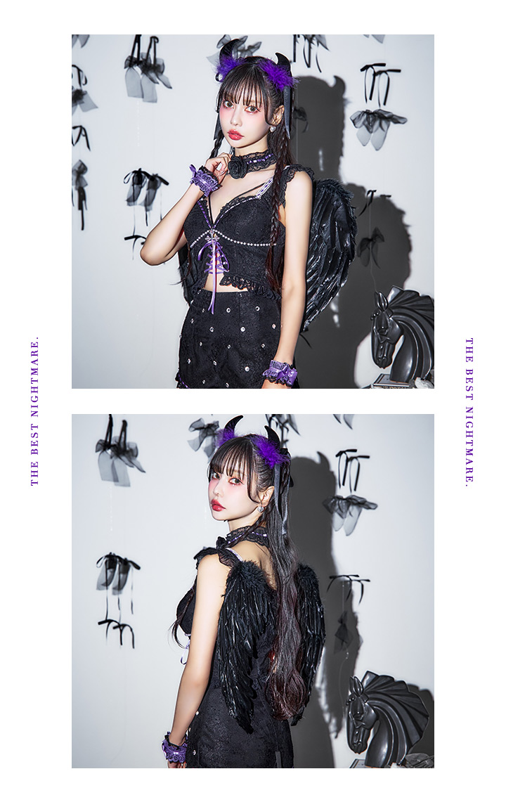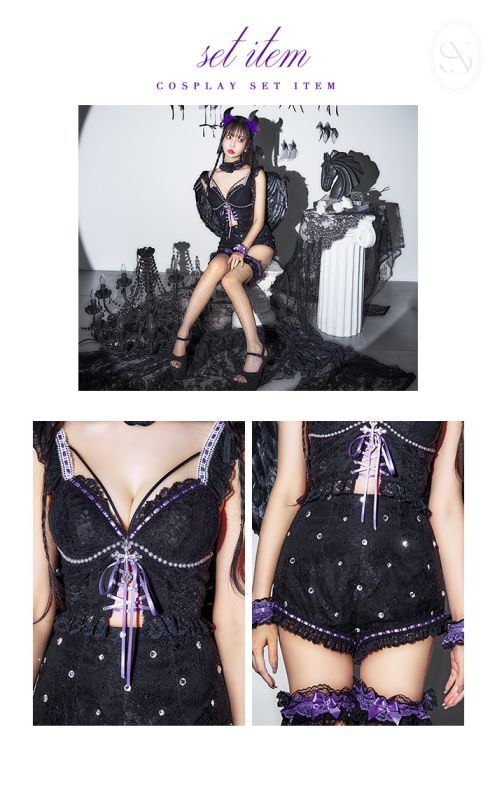 ブラックとパープルが印象的なランジェリー風デビルコスプレセットアップ