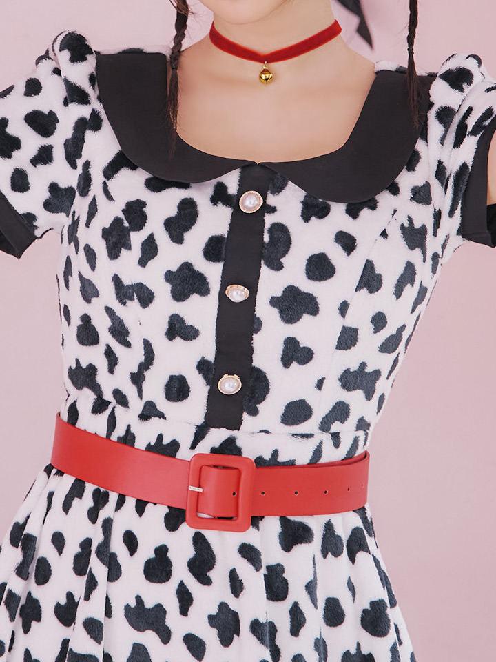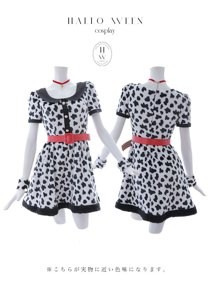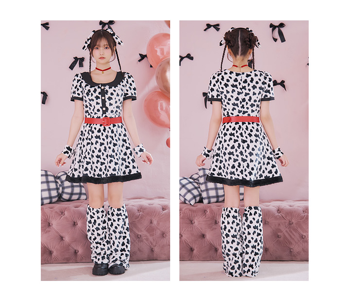 【即日発送!】【ハロウィン】ダルメシアンミニフレアワンピース 【コスプレ5点セット】 【S-XLサイズ/1カラー】[HC03]