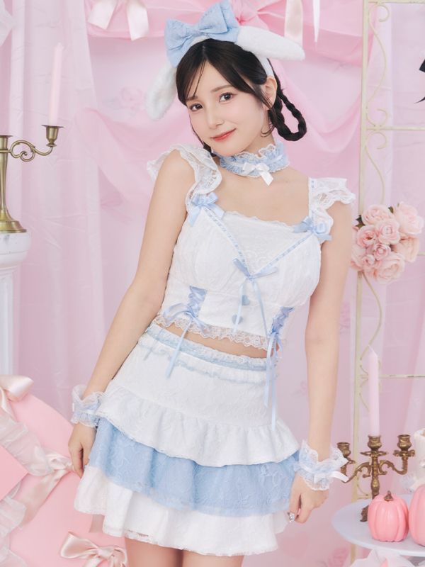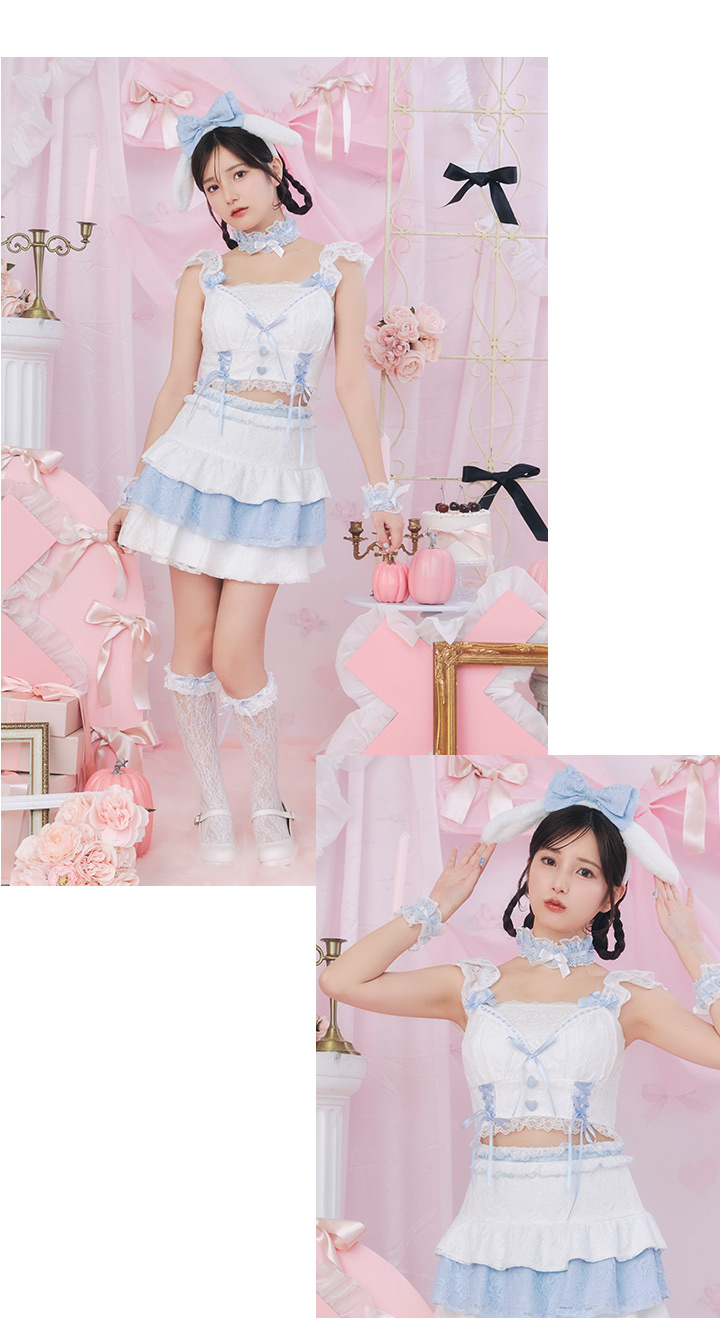 犬 パピー いぬ 子犬 リボン 甘い あざと コンカフェ スイート あまい フレア ミニ セットアップ セクシー コスプレ