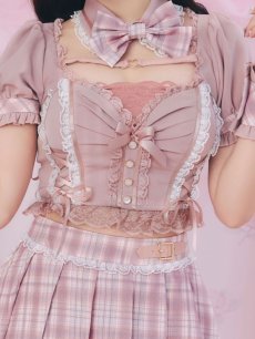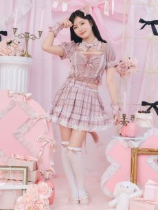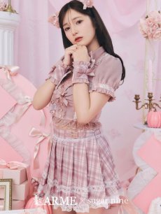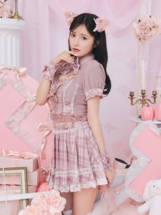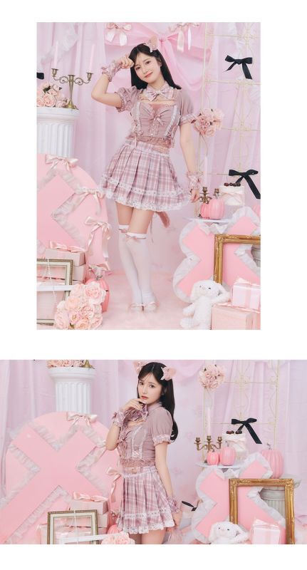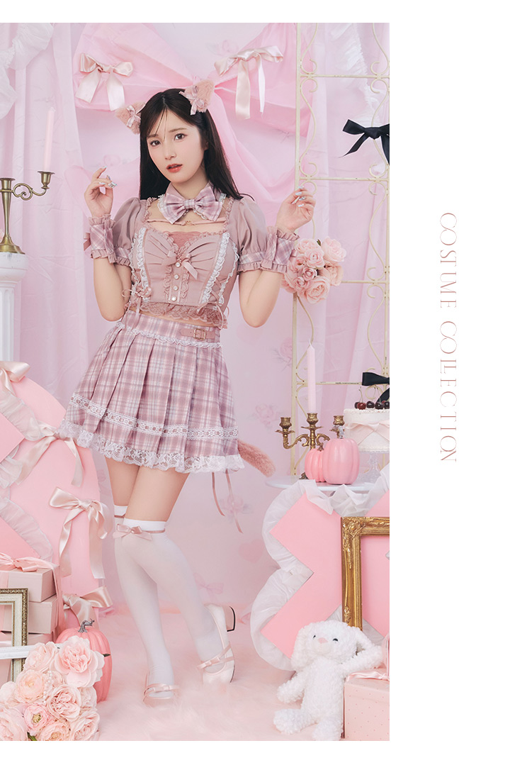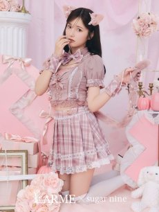 猫 アイドル チェック 制服風 リボン 甘い あざと コンカフェ スイート あまい フレア ミニ セットアップ セクシー コスプレ
