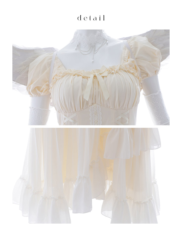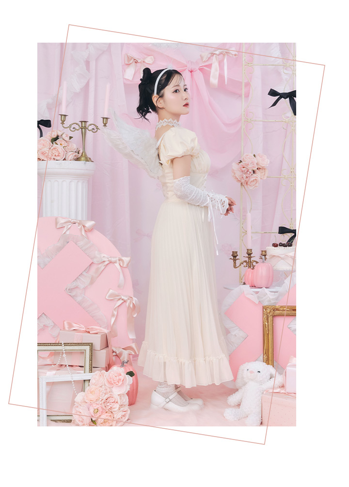 天使 エンジェル 白 しろ ホワイト ほわいと フレア ワンピース コスプレ リボン 甘い あざと コンカフェ スイート あまい